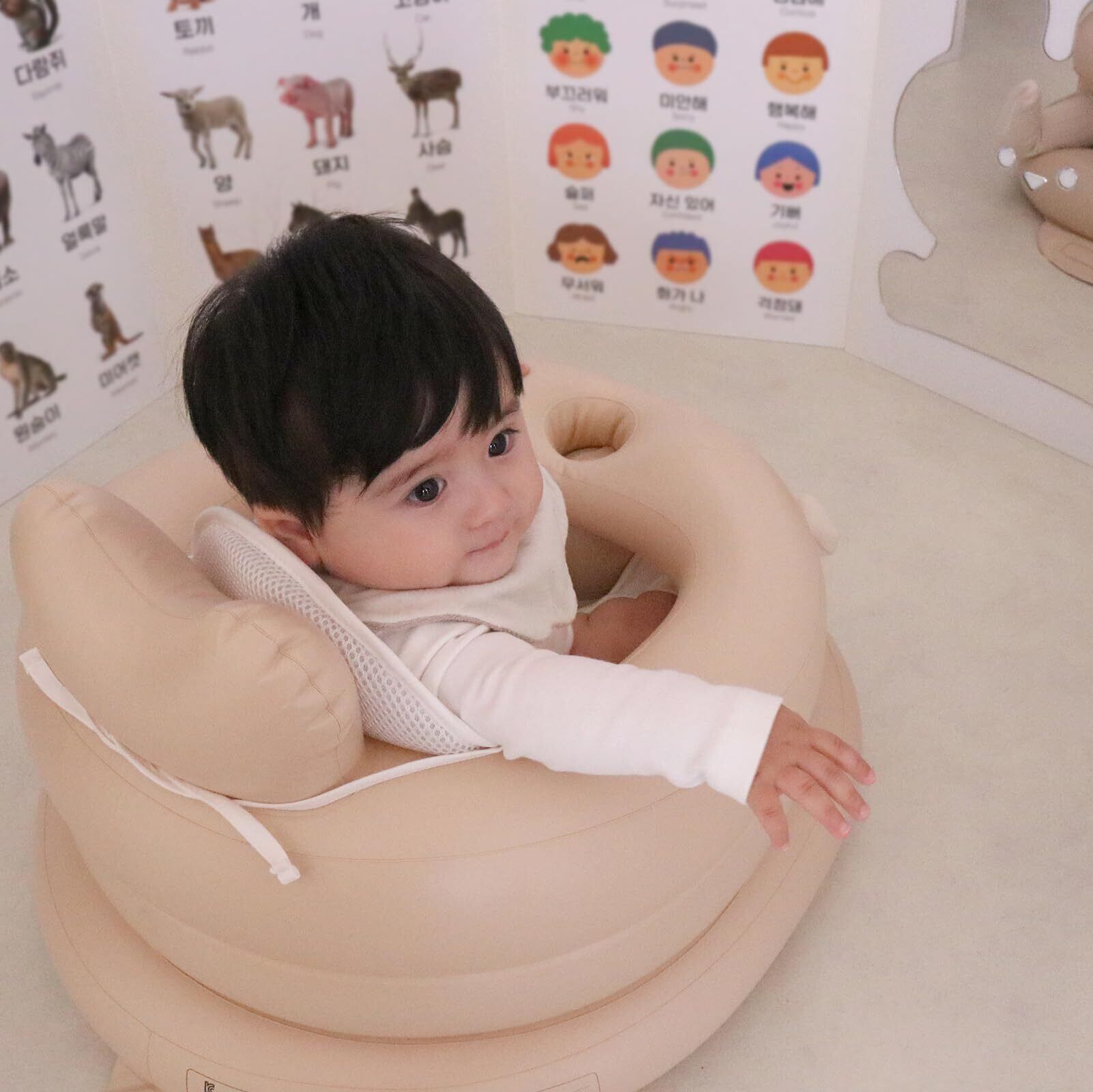 新生児用空気式クッションチェアー。空気でふんわり包み込む、赤ちゃん専用チェアーです。軽くて、やわらかくて、安心。毎日の育児に、やさしい居場所を。