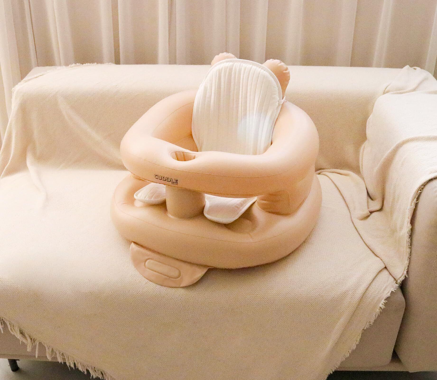 CUDDLE [カドル] ベビーチェア 赤ちゃん バスチェア ベビー用バスチェア ふかふか シャワーチェア お風呂 食事用 折りたたみ 空気式 お座り練習チェア 水切れ ベージュ
