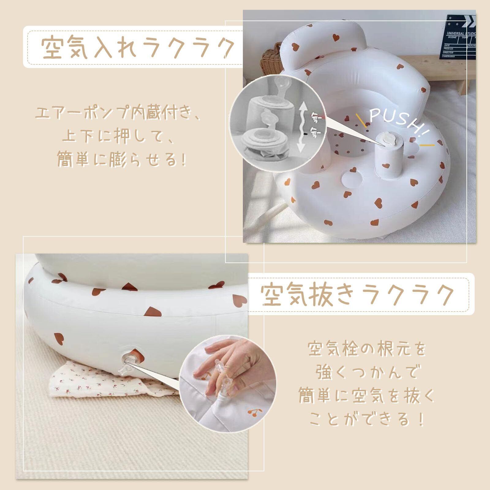 【使いやすさ】空気で膨らますタイプのバスチェアです。膨らませたり縮めたりするのが簡単で、いつでもどこでも赤ちゃんの一時的な場所になります。