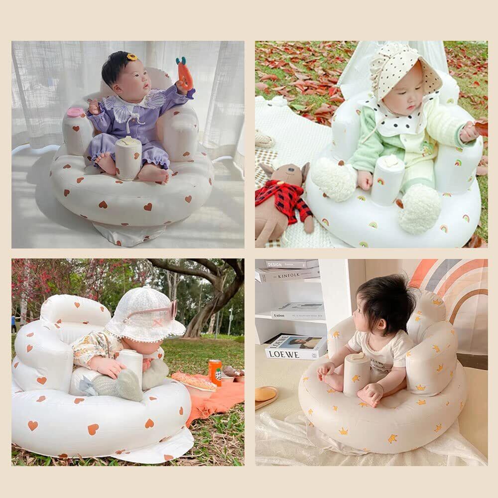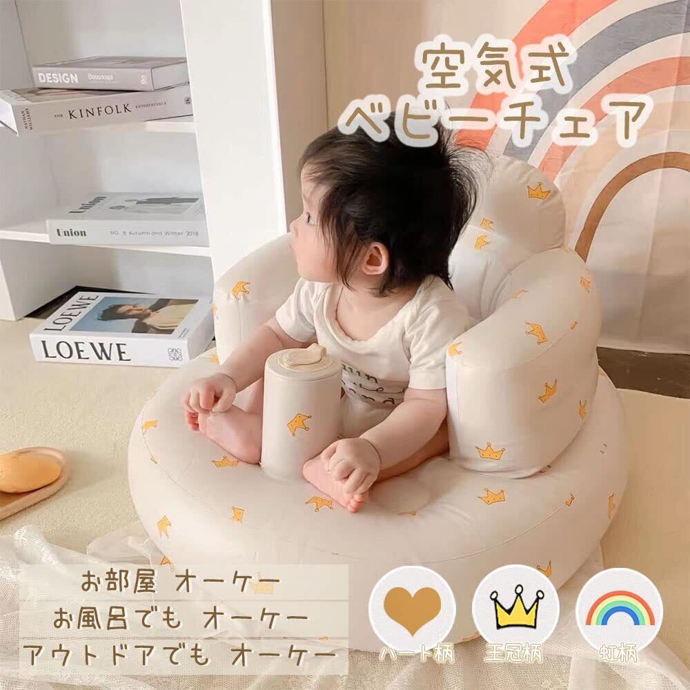 dodulara ベビーチェア 赤ちゃん バスチェア ベビー用バスチェア ふわふわシャワーチェア お風呂 食事用 折りたたみ 空気式 お座り練習チェア 水切れ (王冠)