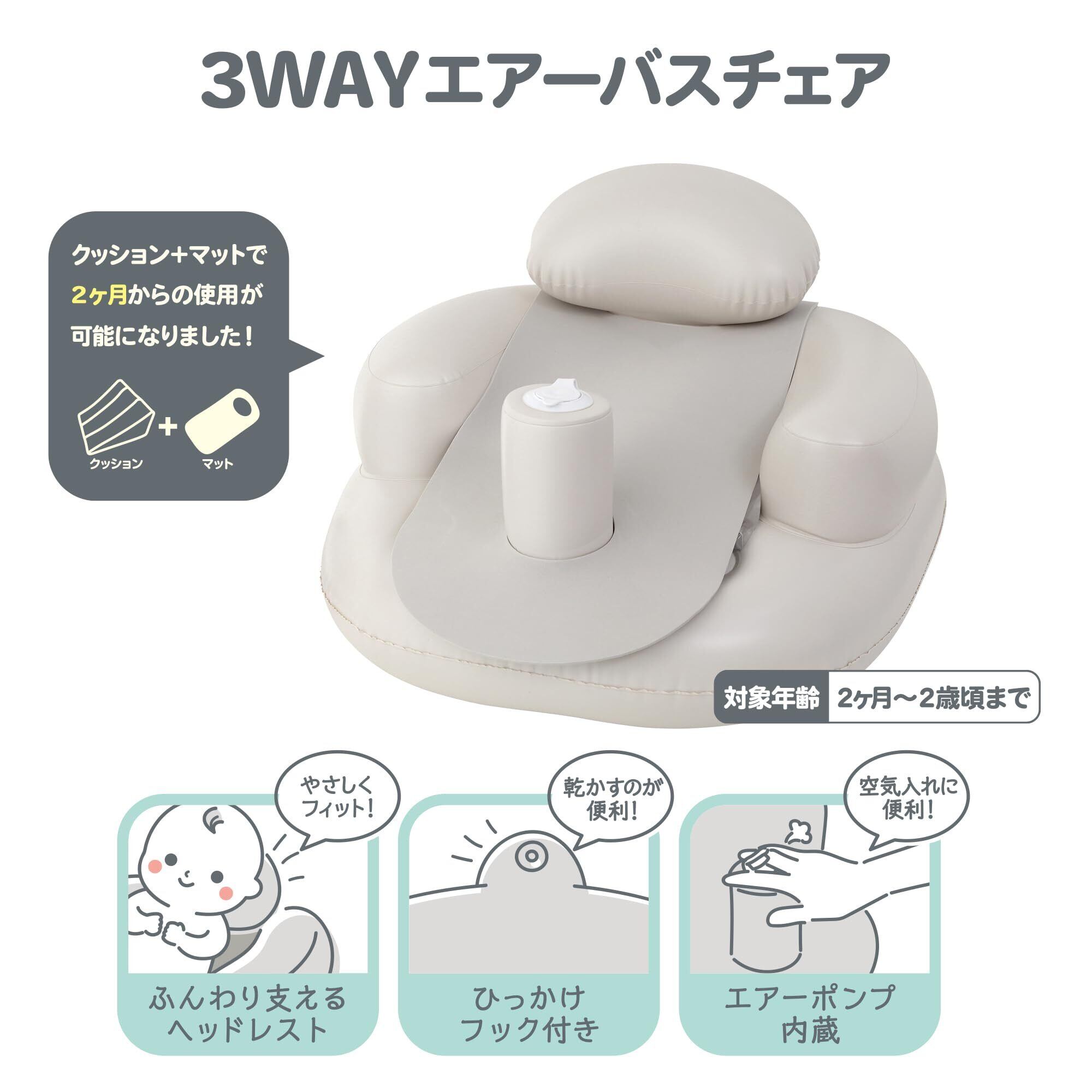 【数量限定】永和 3WAYエアーバスチェア ベビー 入浴・スキンケア バスタブ・バスシート 沐浴 赤ちゃん お風呂 ふんわり 空気式 お座り練習 新生児