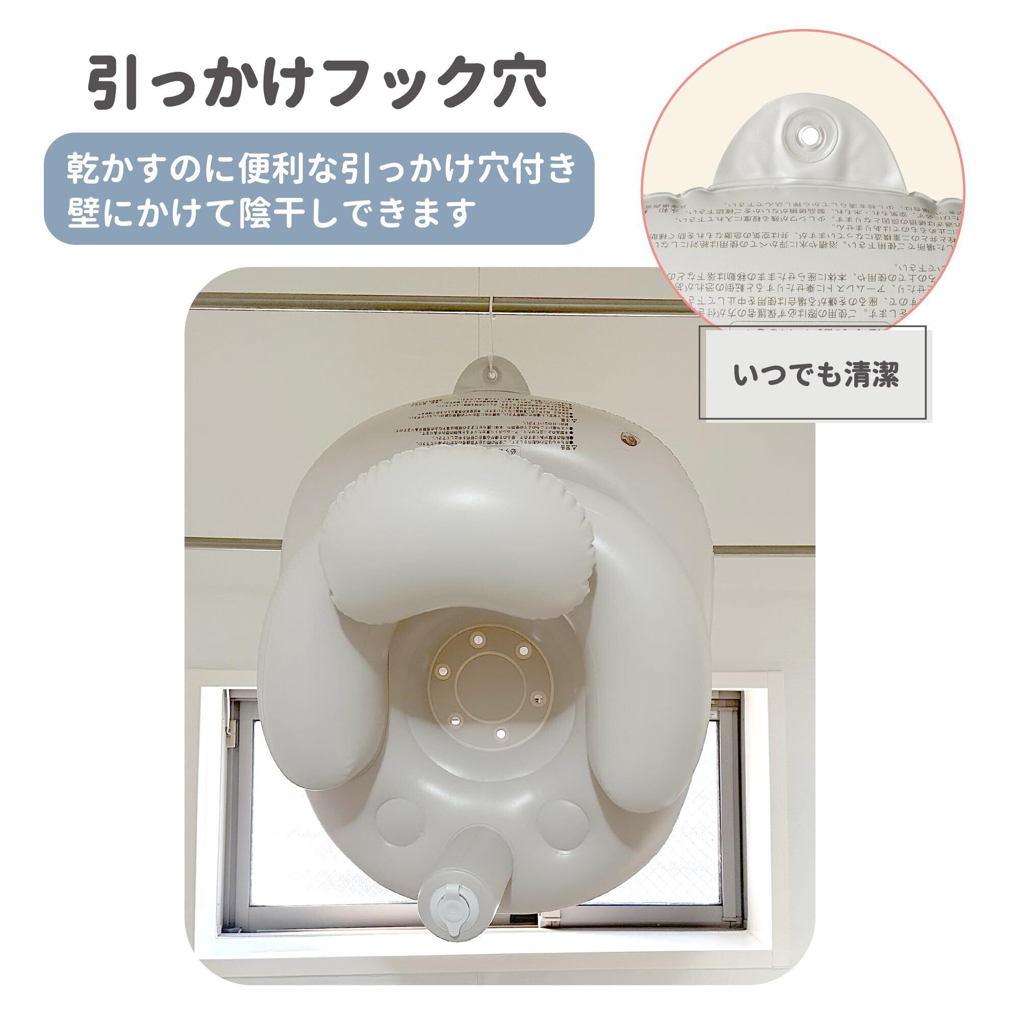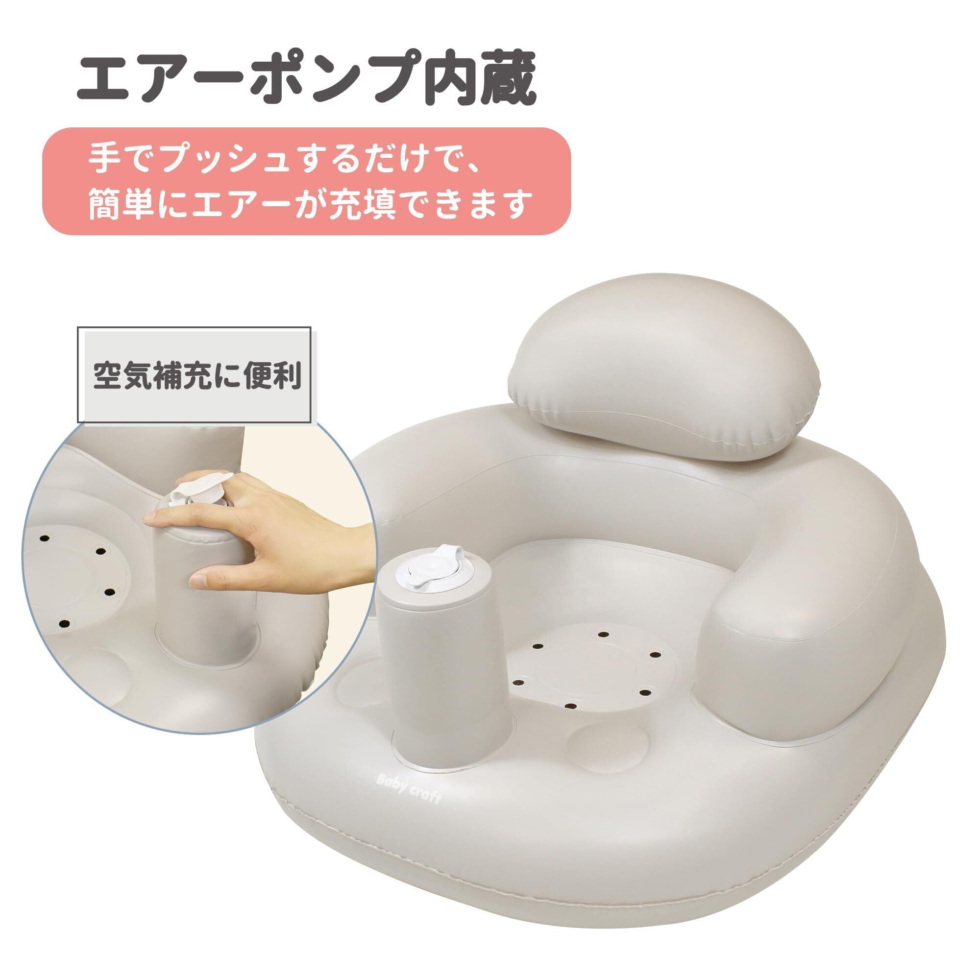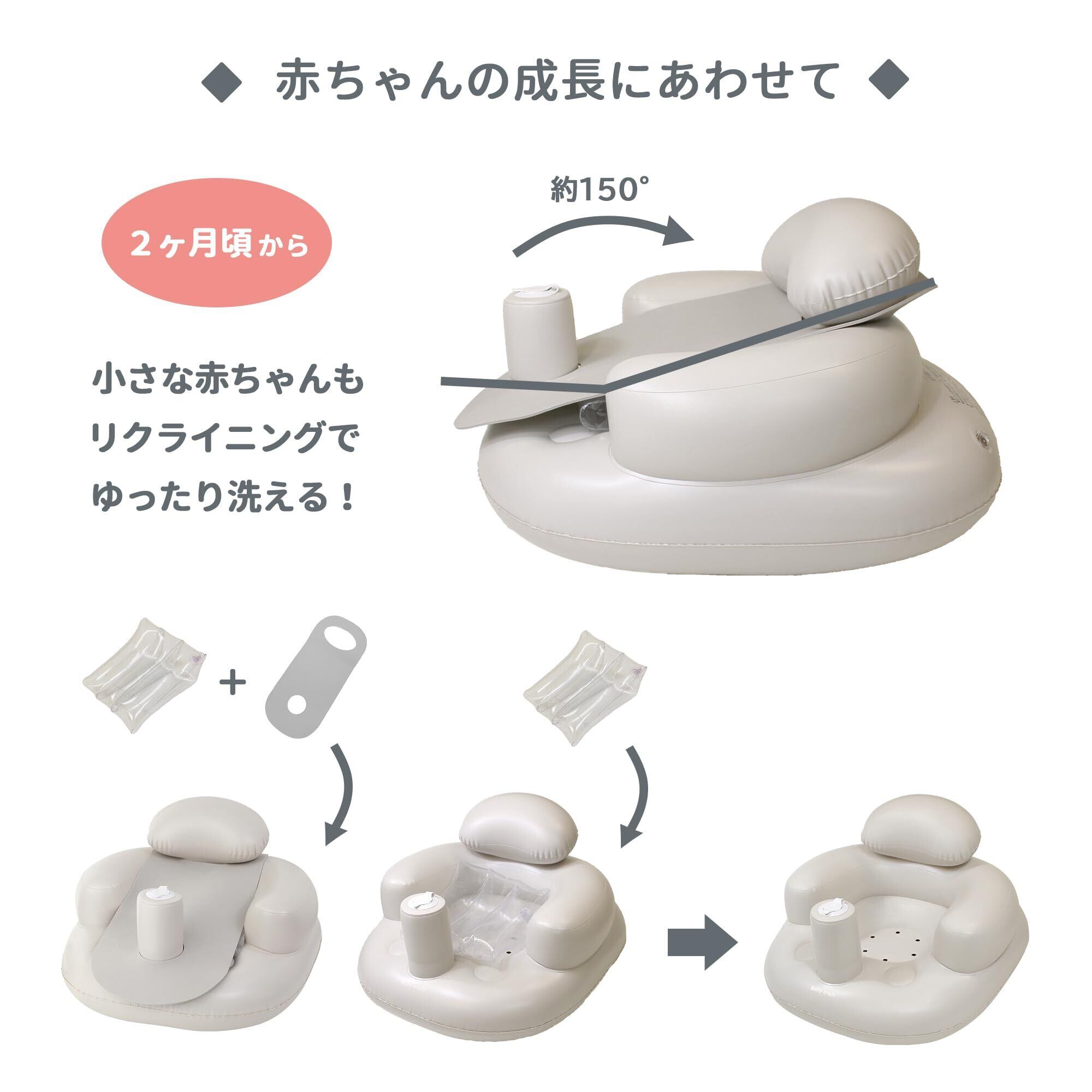 お子様を入浴させるのに便利なバスチェア。空気で膨らませるため、ふわふわで赤ちゃんも安心です。