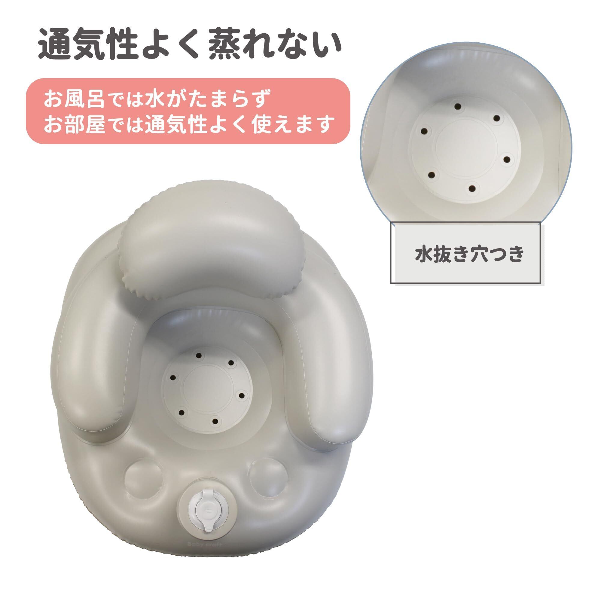 空気で膨らますタイプのバスチェアです。やわから素材で安心して使えます。