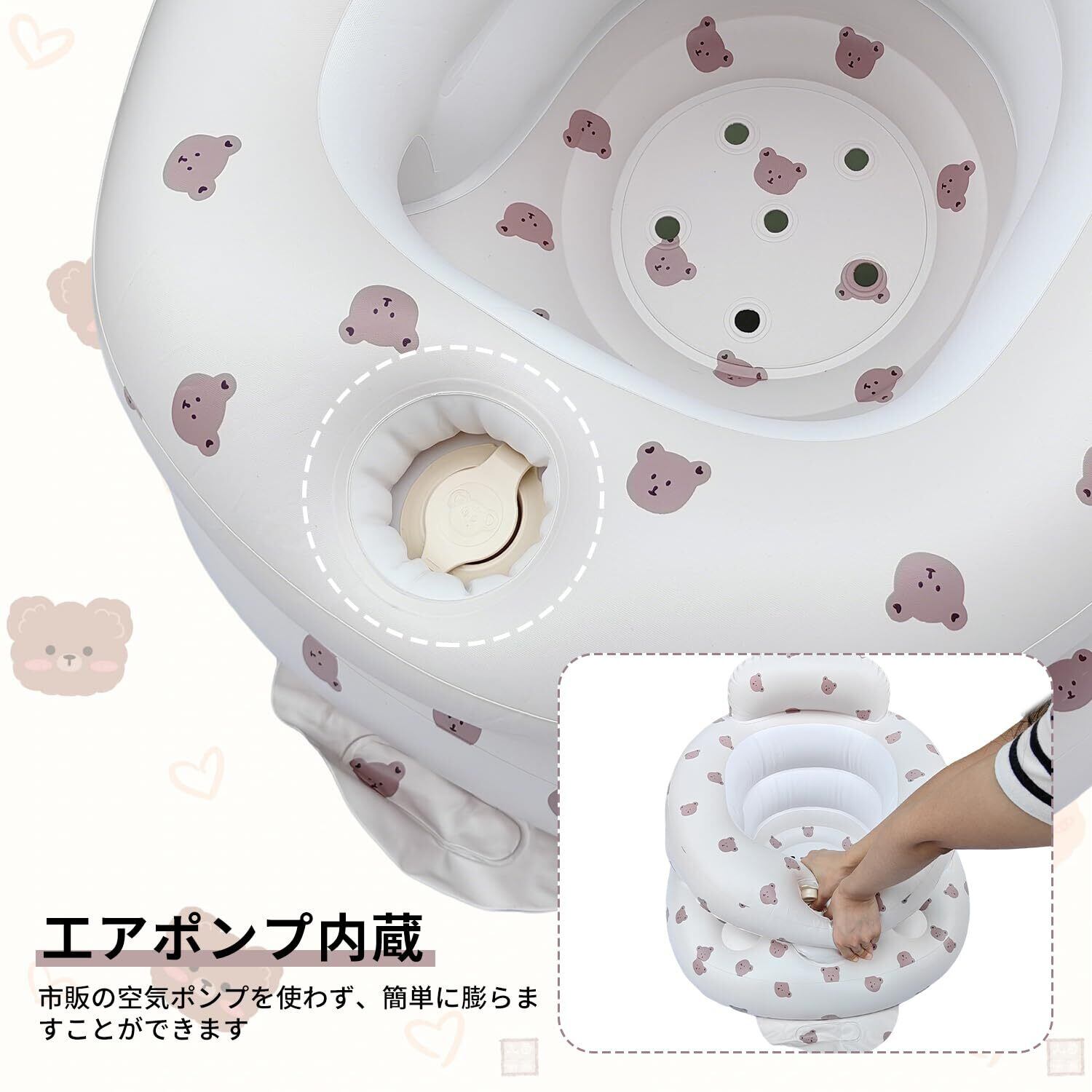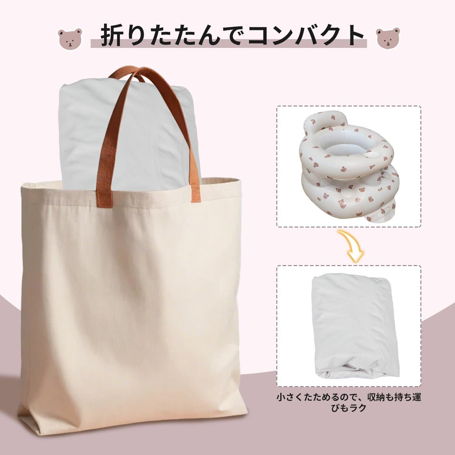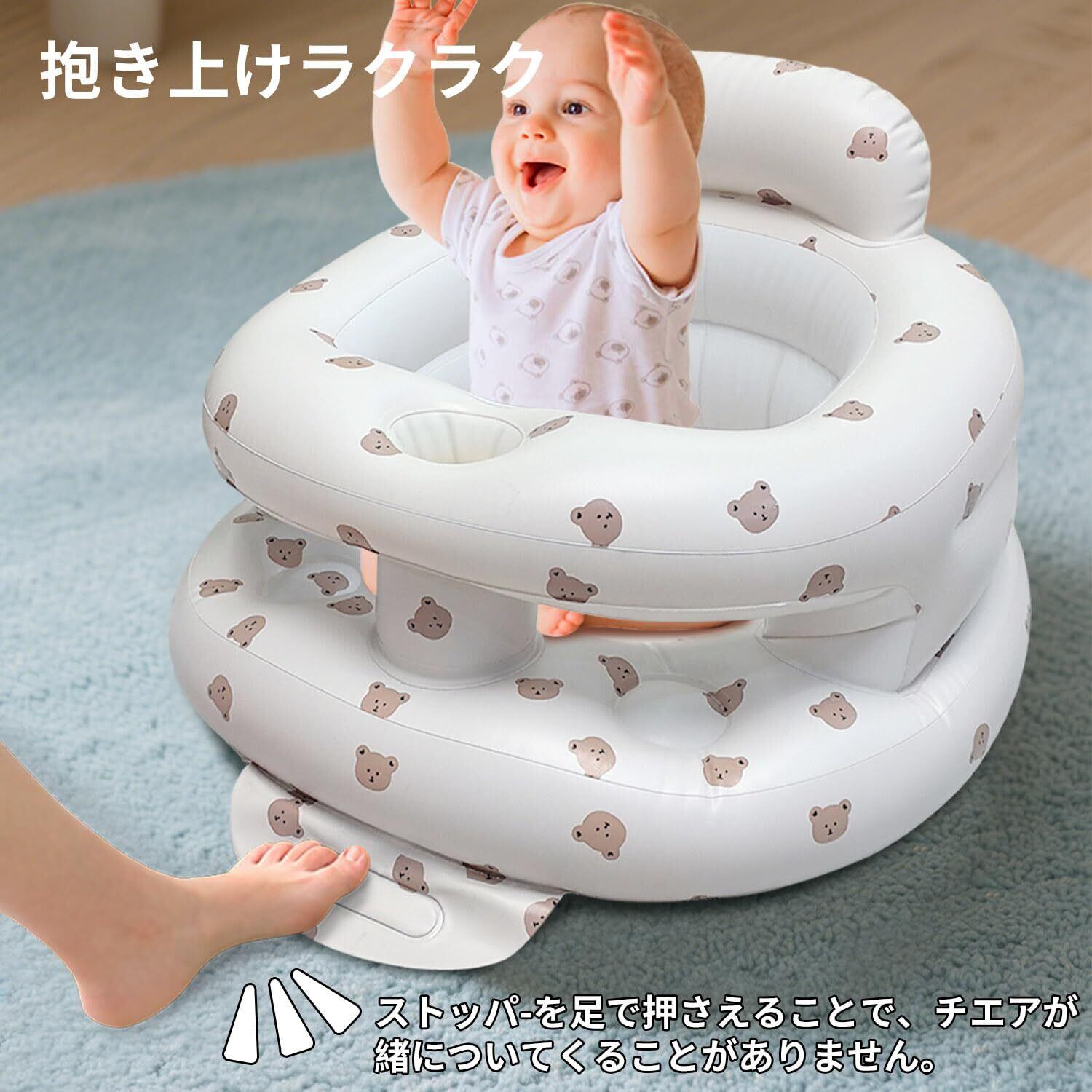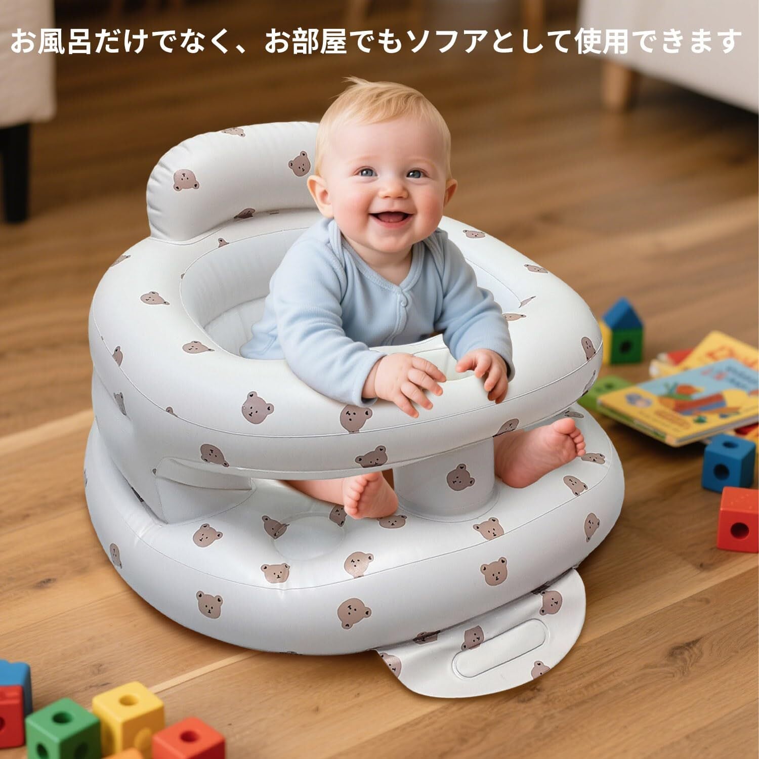 UBRAVOO バスチェア ベビーチェア 赤ちゃん ベビーソファー 空気椅子 お座り練習チェア お風呂 食事用 折りたたみ コンパクト 収納便利 空気式 水切れ 出産祝い (クマ)