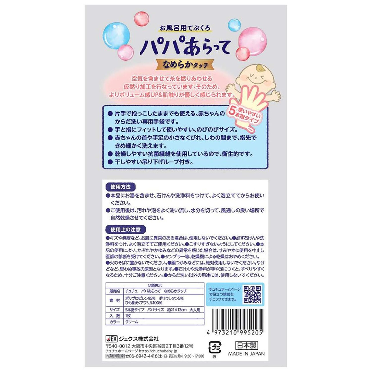 ChuChu チュチュ チュチュパパあらってなめらかタッチ【お風呂用てぶくろ 赤ちゃん用 抗菌 右手・左手兼用】 1個 (x 1)