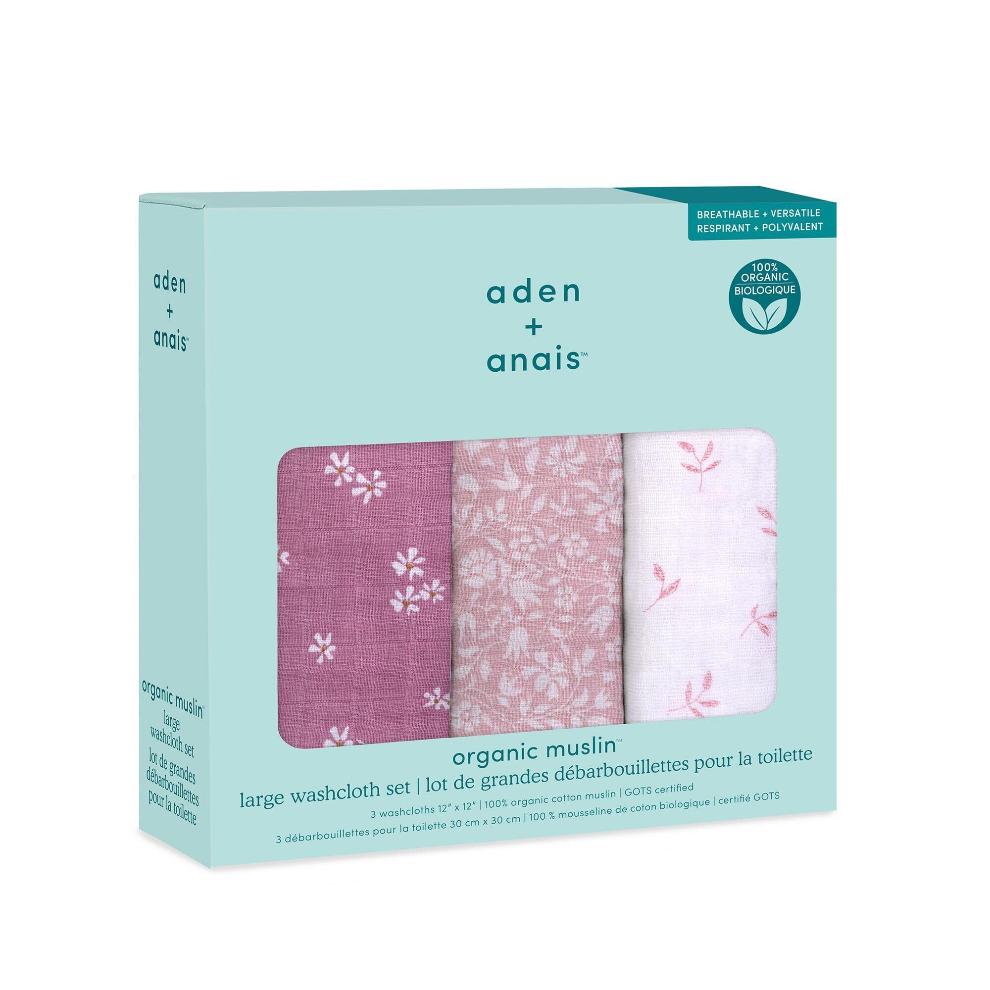 aden + anais(エイデンアンドアネイ) オーガニック コットン ウォッシュクロス 3枚入り heritage floral 30×30cm 洗濯機可 柔らかい 繊細な肌用 赤ちゃん 出産祝い ギフトWCADABAWCO30007