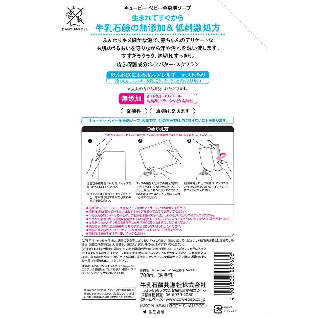 【大容量】キューピー ベビー全身泡ソープ 700ml(詰替用2回分)