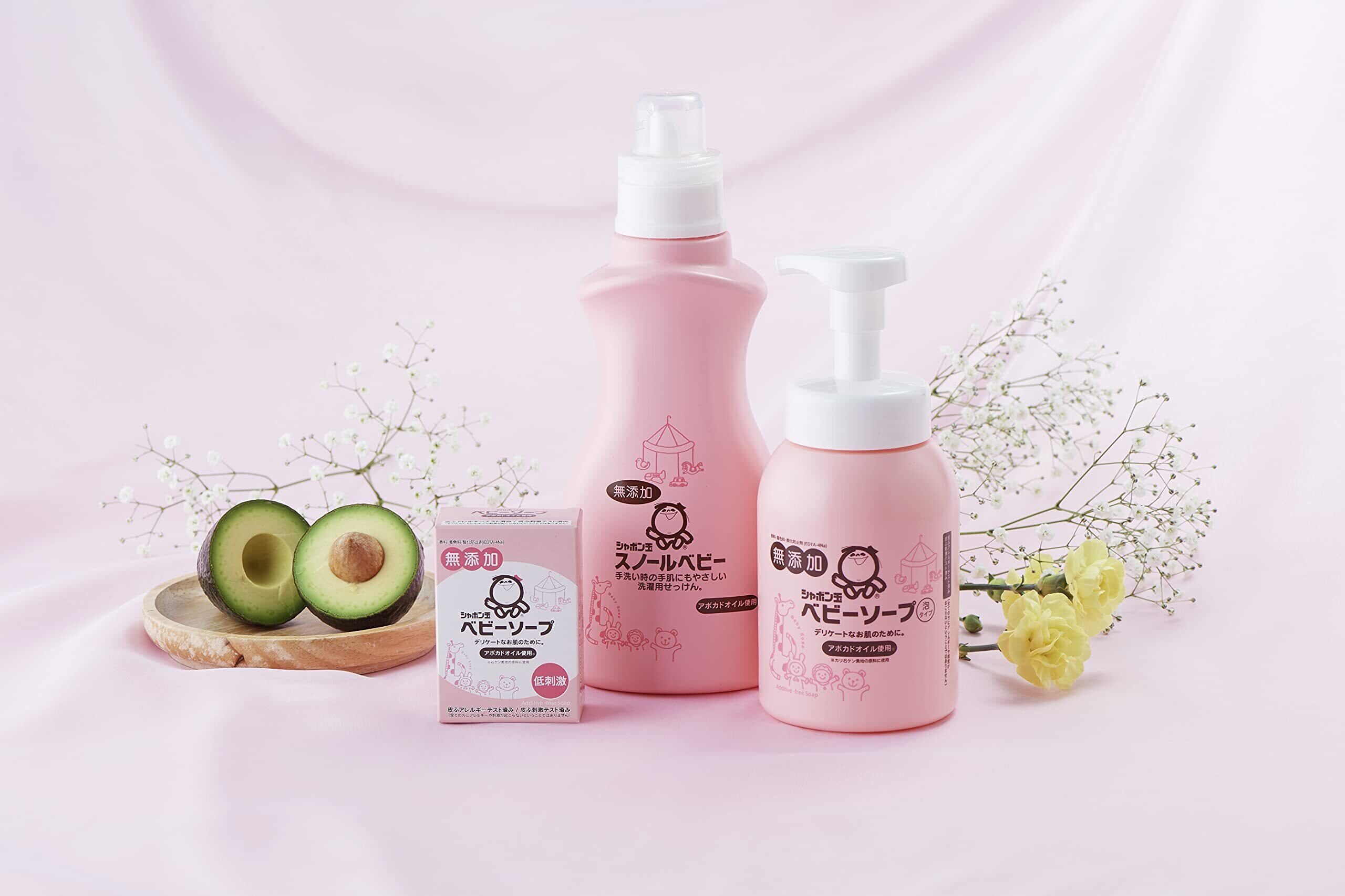 ●原料や成分にも拘るシャボン玉ベビーシリーズは低刺激で保湿性に優れたアボカドオイルと上質な天然油脂でつくられています。デリケートな赤ちゃんの肌を優しく洗い上げます。