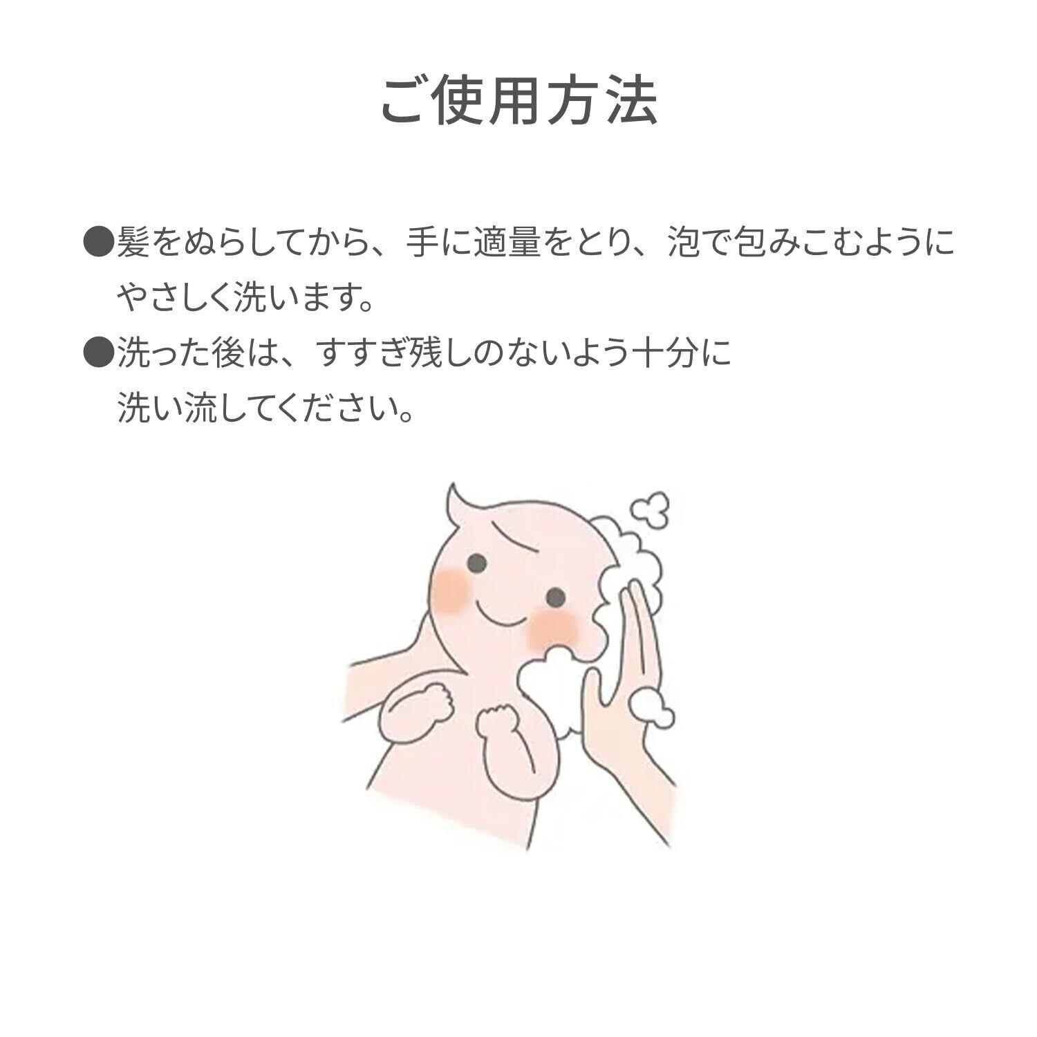 髪をぬらしてから、手に適量をとり、泡で包みこむようにやさしく洗います。 洗った後は、すすぎ残しのないよう十分に洗い流してください。 <使い始めは> ストッパーを外し、中味が出るまでポンプを数回押してください。