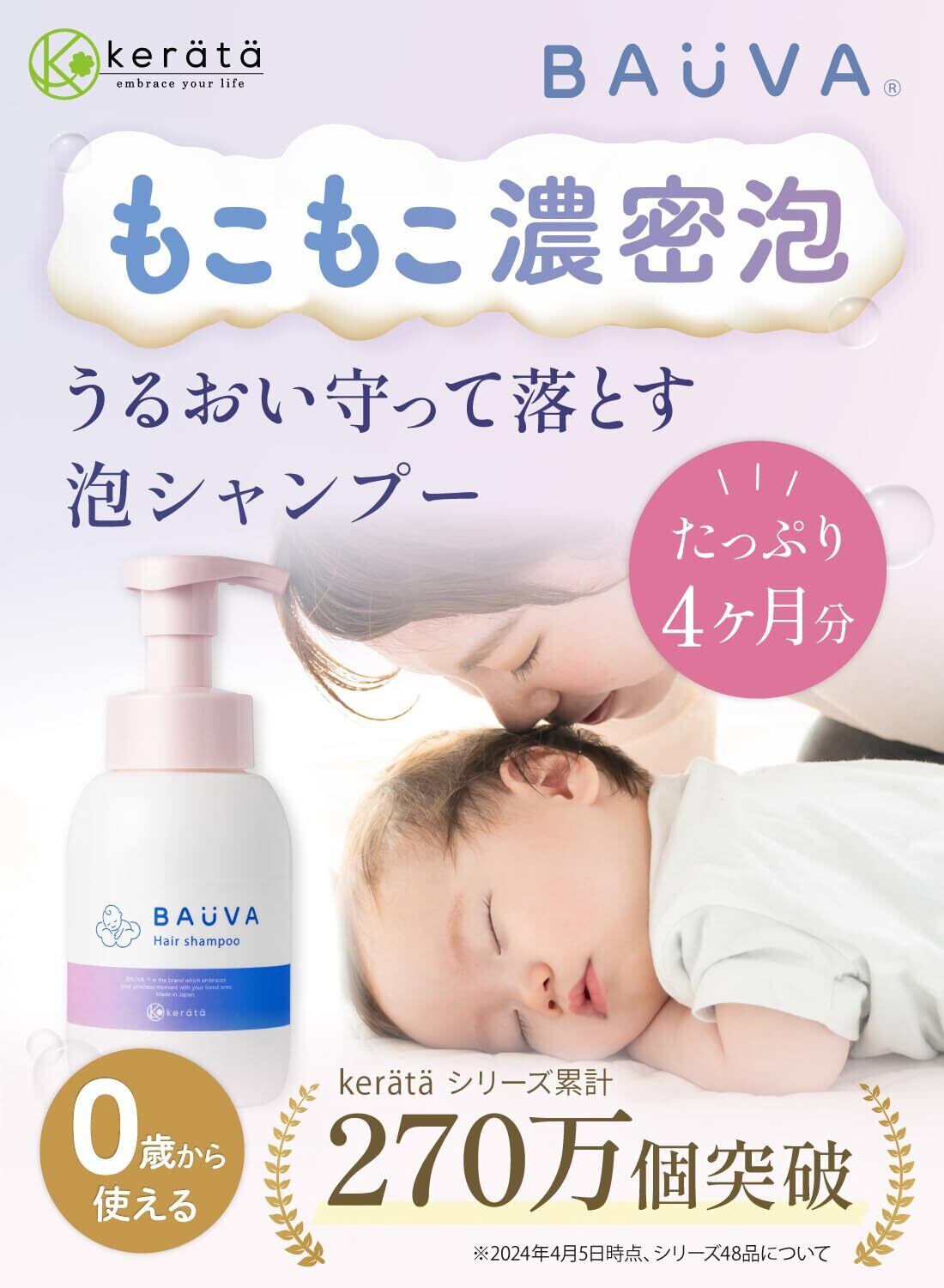 【ベビー用品で人気のケラッタからベビーシャンプー登場!】シリーズ累計販売270万個突破、ベビー用品で人気の「kerätä(ケラッタ)」から、「バウバ ベビー泡シャンプー」が登場。