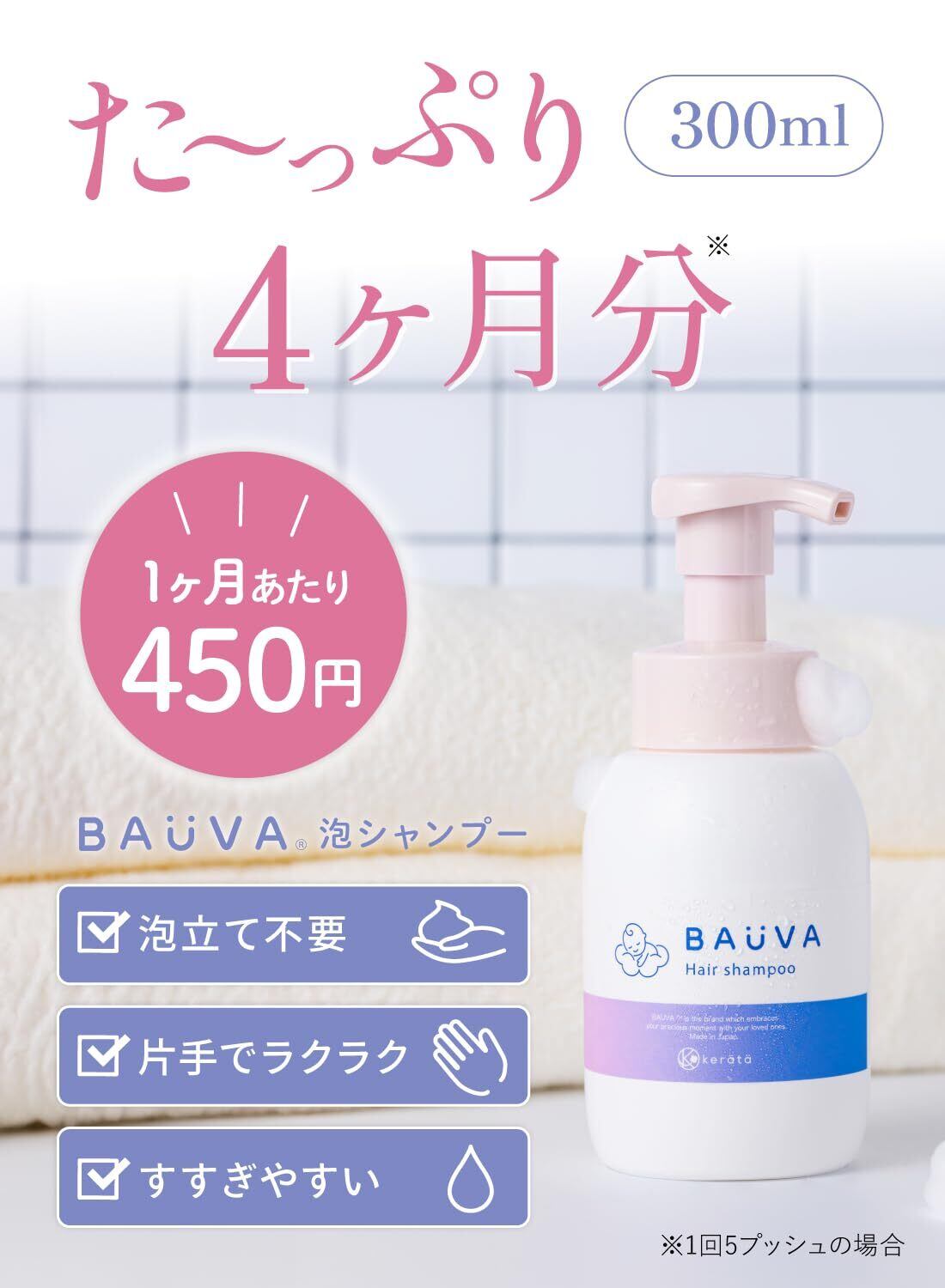 【もこもこ濃密泡】ベビーシャンプー バウバ 皮膚科医と開発 目しみにくい (たっぷり4ヵ月分) うるおい守って落とす 無添加 オーガニック 地肌ケア ヘア シャンプー 赤ちゃん 汗 におい スッキリ 300ml BAUVA ケラッタ