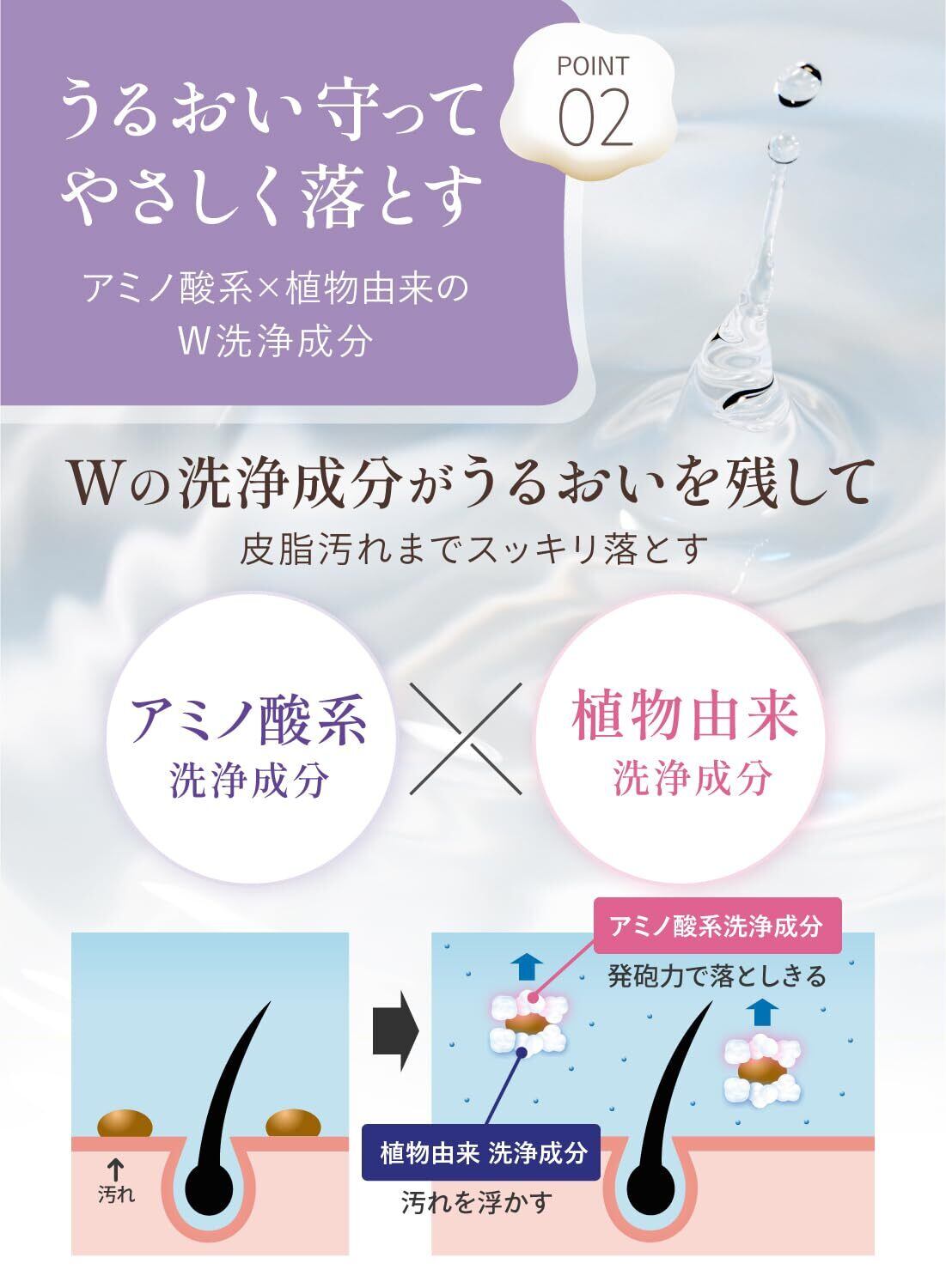 【もこもこ濃密な泡がすみずみまで密着】きめ細かいモチモチな泡が、細い髪の毛1本1本の奥まで届いて密着。地肌の汗・べたつきまでスッキリ落とします。