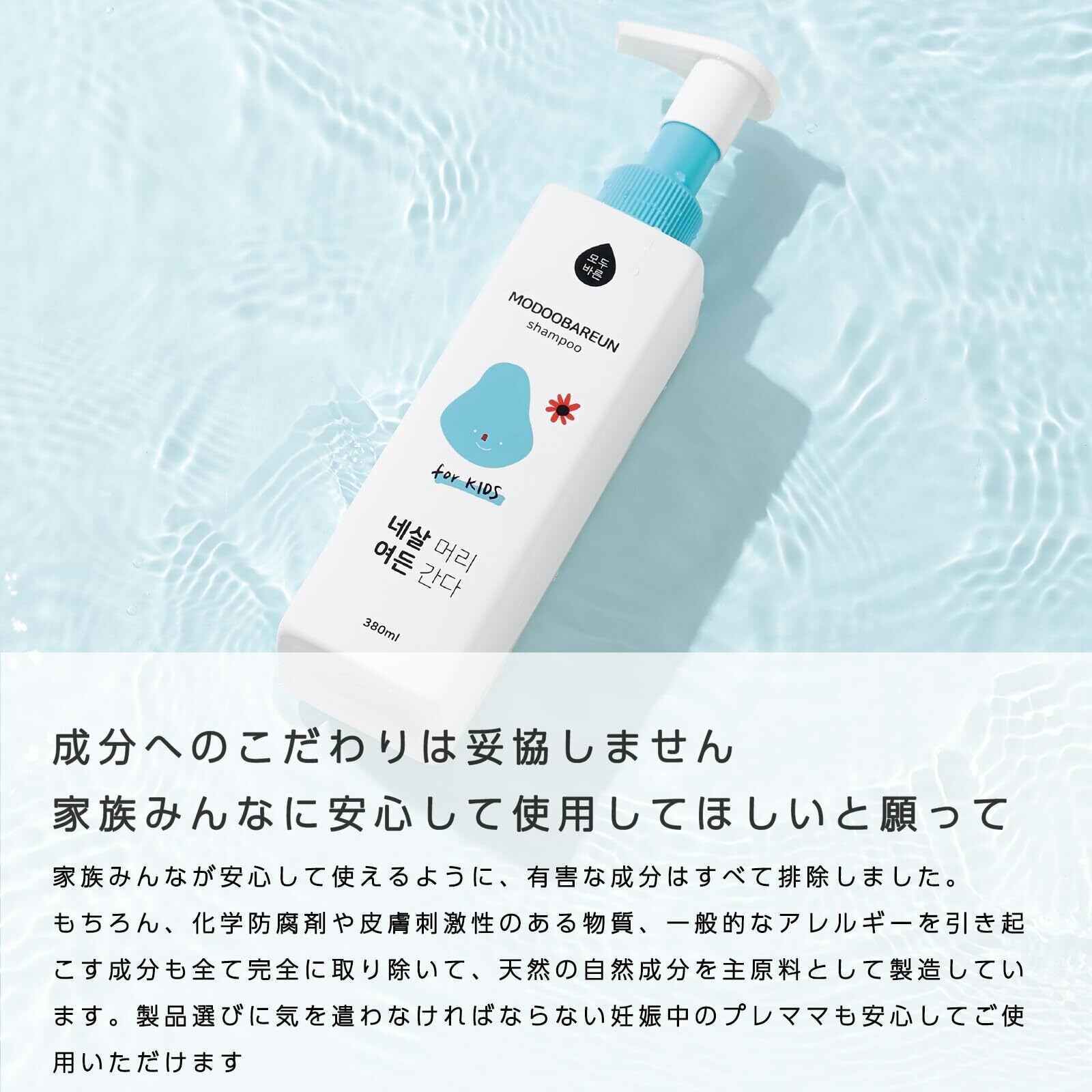 MODOOBAREUN Kids & Mom ベビー & キッズ シャンプー 髪と頭皮をしっかり保湿 新生児から使える ヘアケア オーガニック & ヴィーガン 天然成分で作られた 自然由来の シャンプー(本体 380ml)