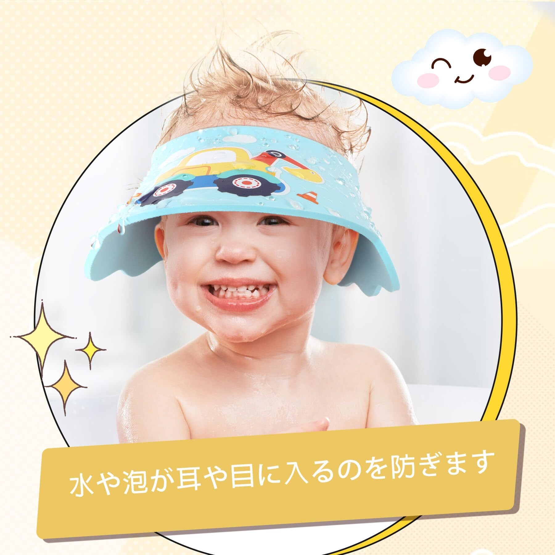 【しっかり防水】11.5cmワイド設計、水や泡が目や耳に入るのを防ぎ、赤ちゃんやお子様のシャンプータイムを快適にします。