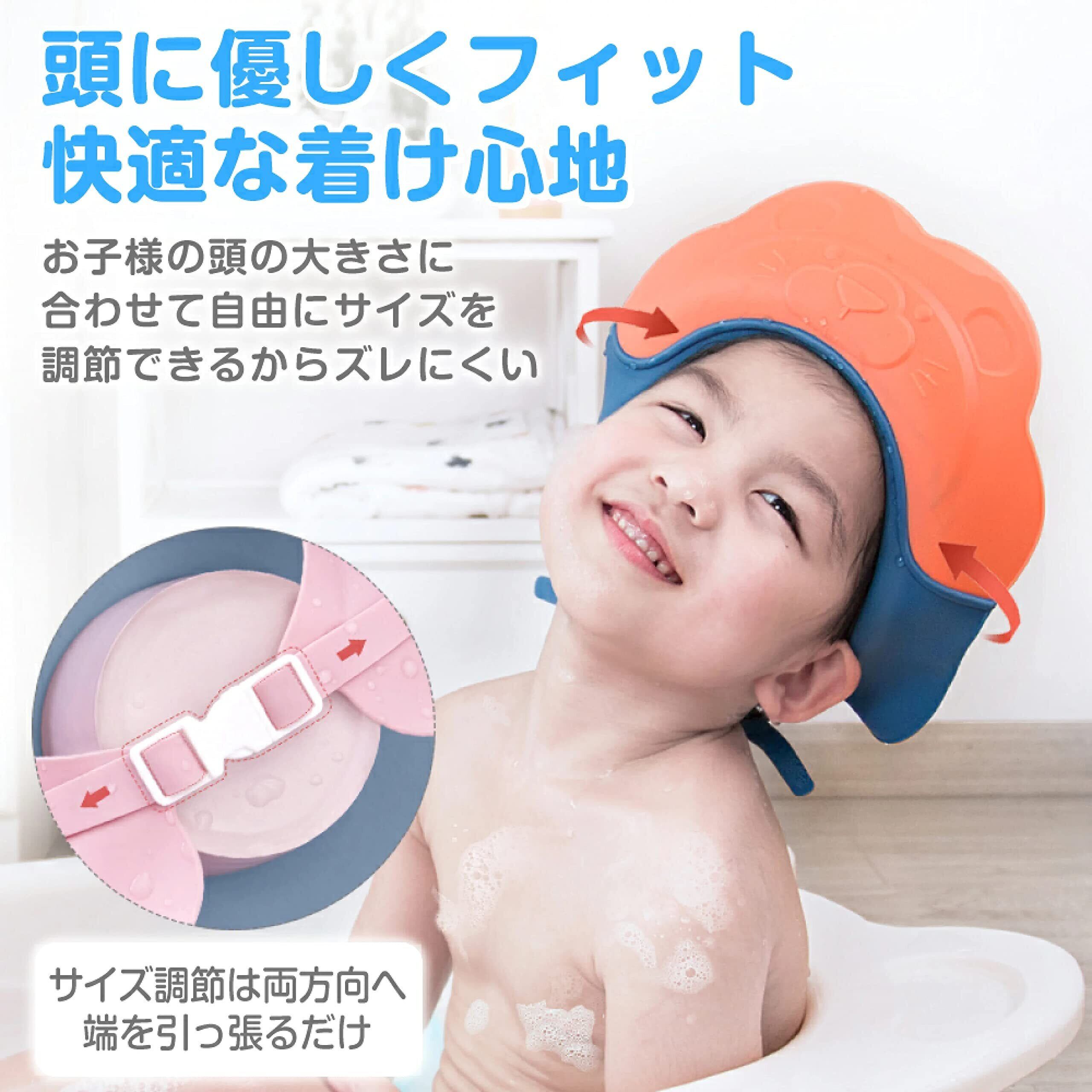 MonikaSun シャンプーハット サイズ調整可能シャンプーキャップ 子供用 シャワーキャップ 防水帽 目を保護 バスグッズ シャワーハット 洗髪用帽子 ライオン (ピンク&ブルー…)