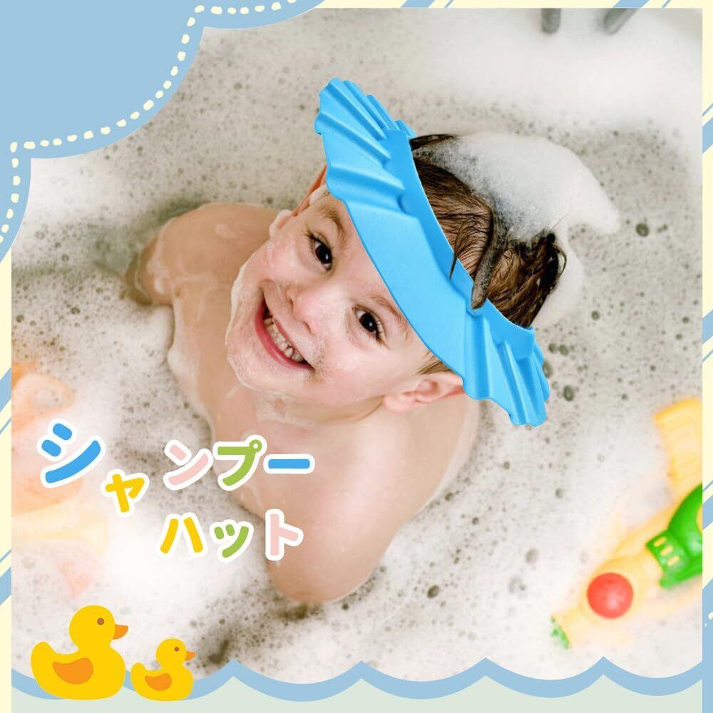 シャンプーハット お風呂用品目に水が入らない シャンプーハット 6ヶ月以上の子供が使用できます サイズ調整可能なシャンプーキャップ 大人と子供が使用することができます (ブルー)