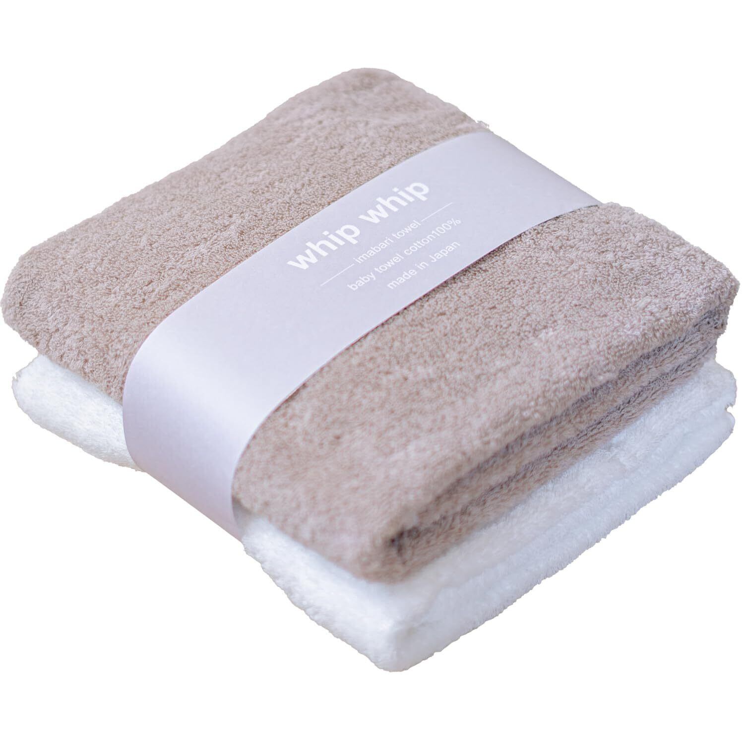 セット内容:ベビータオルx2(ホワイトx1、ベージュx1)