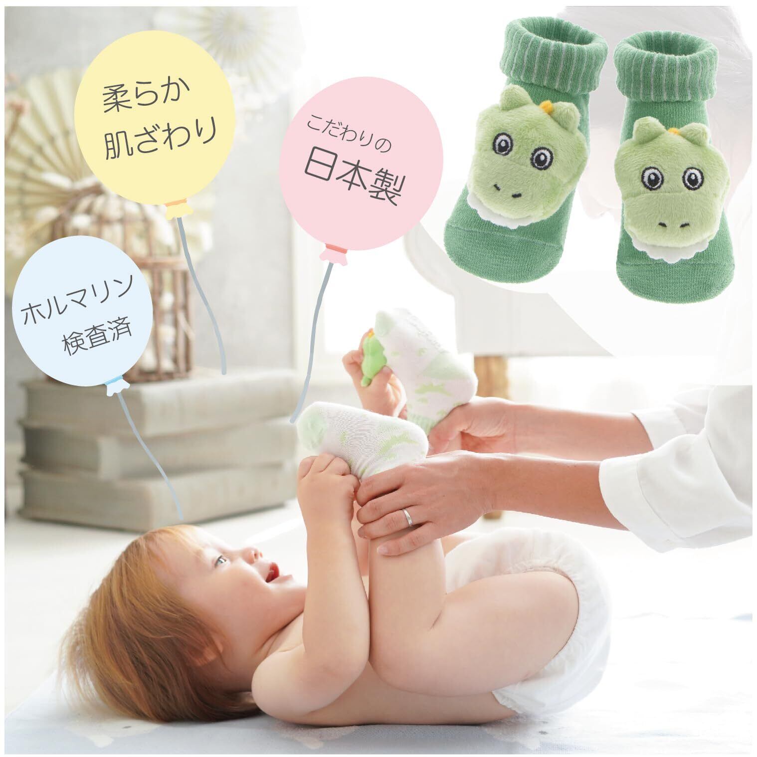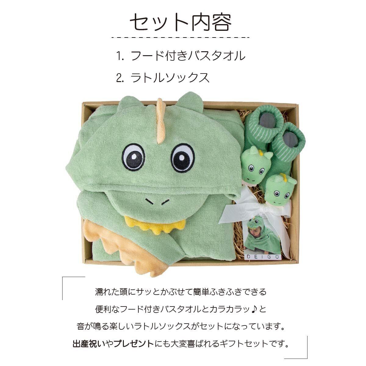 [DEIGO] ディーゴ 出産祝い ベビーバスタオル 赤ちゃん 靴下 ラトルソックス ギフト 男の子 女の子 贈答品 バスタオル&ソックスピュア ザウルス#61404