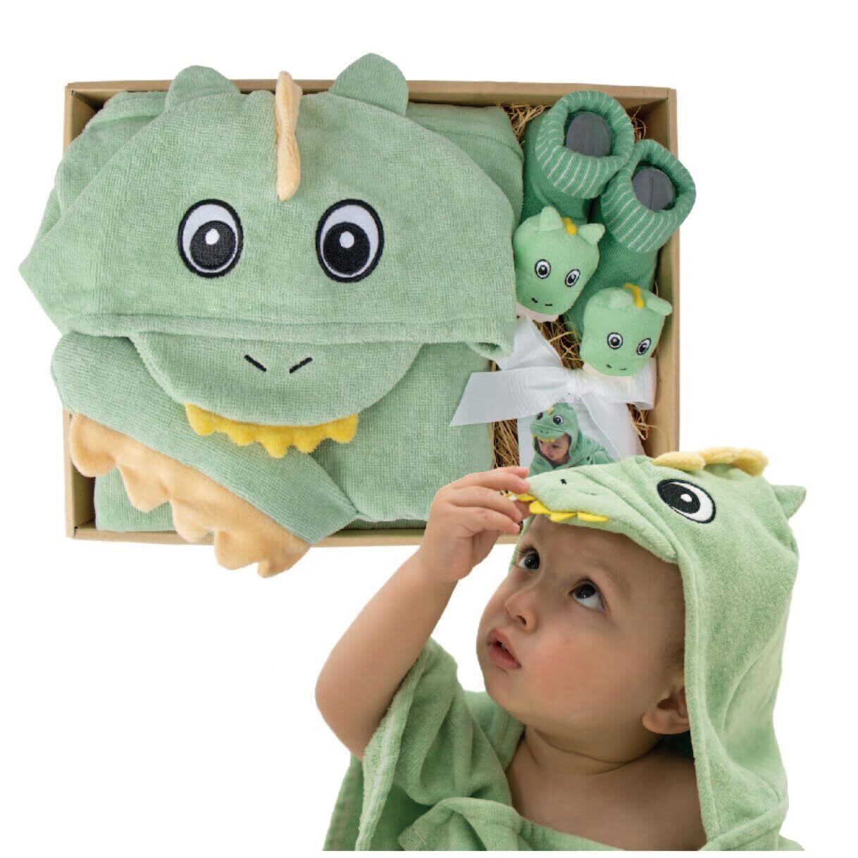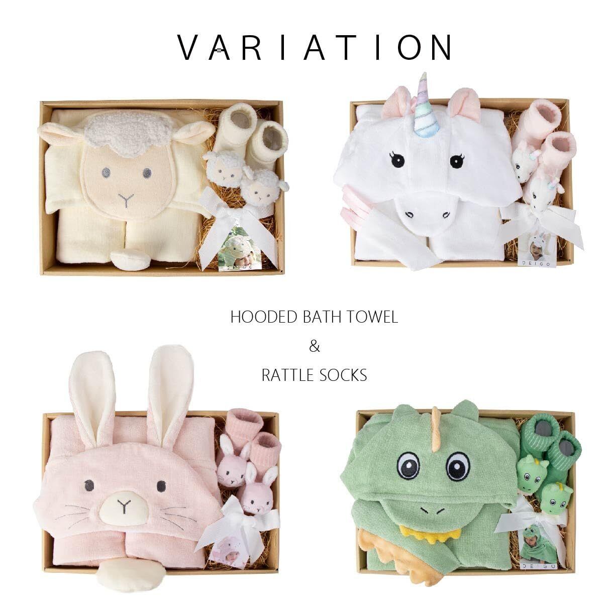 【2022最新】[DEIGO] ディーゴ 出産祝い ベビーバスタオル 赤ちゃん 靴下 ラトルソックス ギフト 男の子 女の子 贈答品 バスタオル&ソックスピュア ザウルス#61404