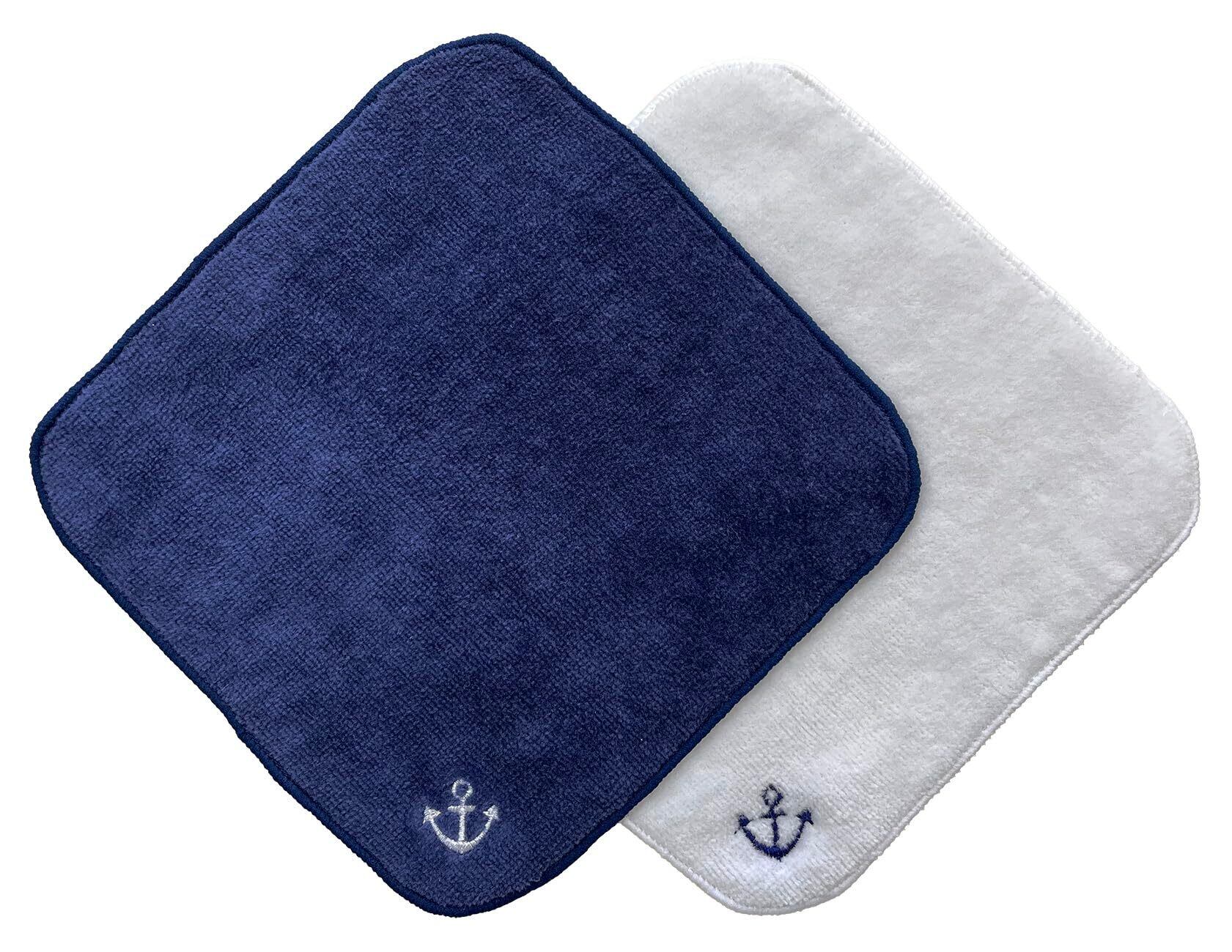 今治タオル×スマイリッシュ ミニタオルハンカチボーイズ2枚セット・名入れスペース付(白いかり&ネイビーいかり)