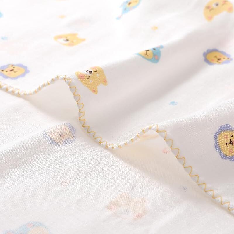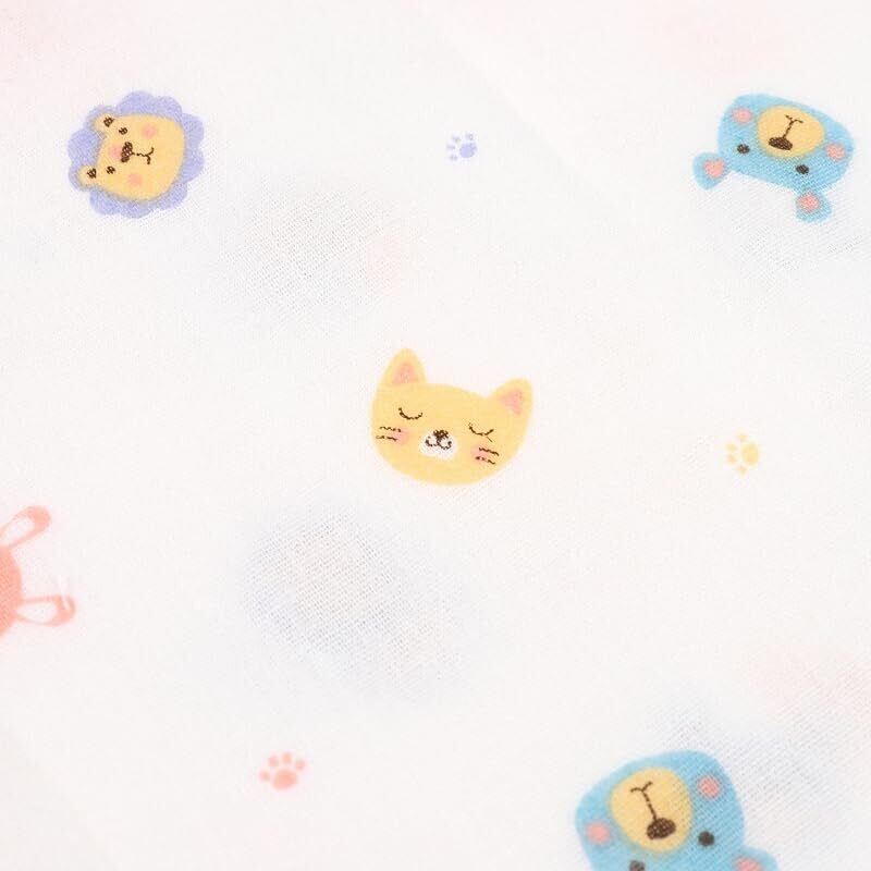 65cm×110cmで大きいサイズなので、タオルケット代わりにも。 様々な表情をした可愛い動物柄をプリント。
