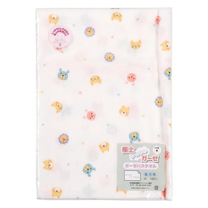 イサム商会 綿100% 日本製 ガーゼバスタオル アニマルランド柄 65cm×110cm ベビー 入浴・スキンケア タオル・ウォッシュクロス 沐浴 お風呂 敏感肌 デリケート コットン 赤ちゃん