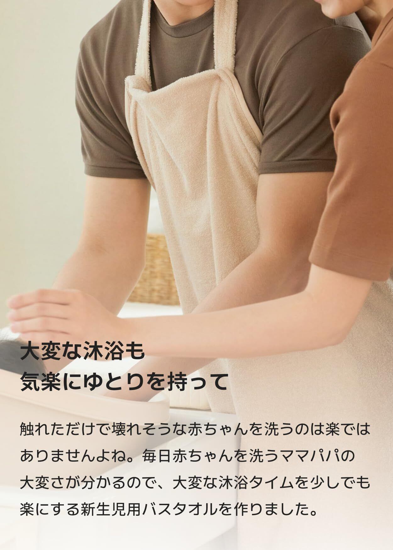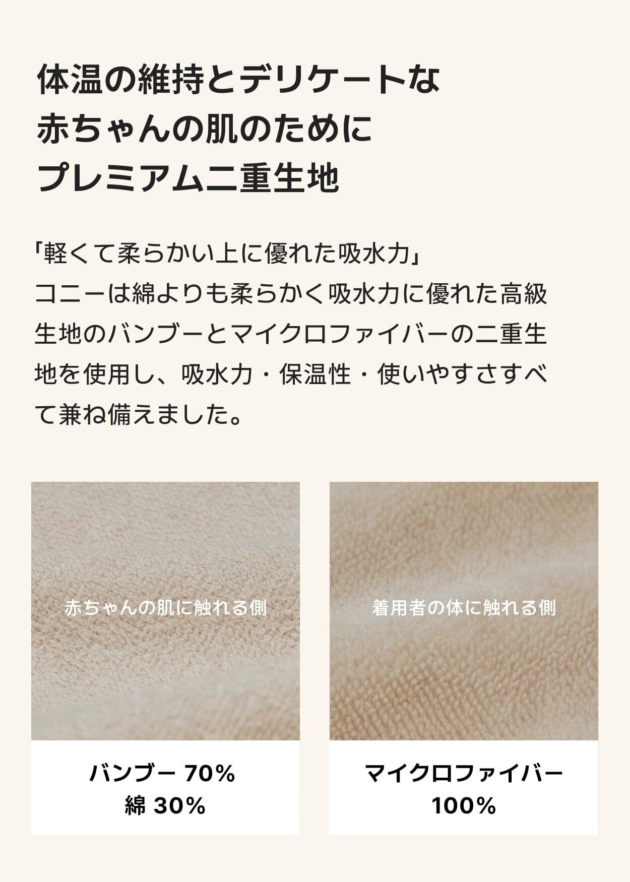 [Konny] コニー EasyBath ニューボーンタオル バスエプロン 新生児 沐浴 赤ちゃん ワンオペお風呂の味方 吸収力 バンブー素材 柔らかい サラサラ感 バスタオル 男の子 女の子 出産祝いギフト(Cream)