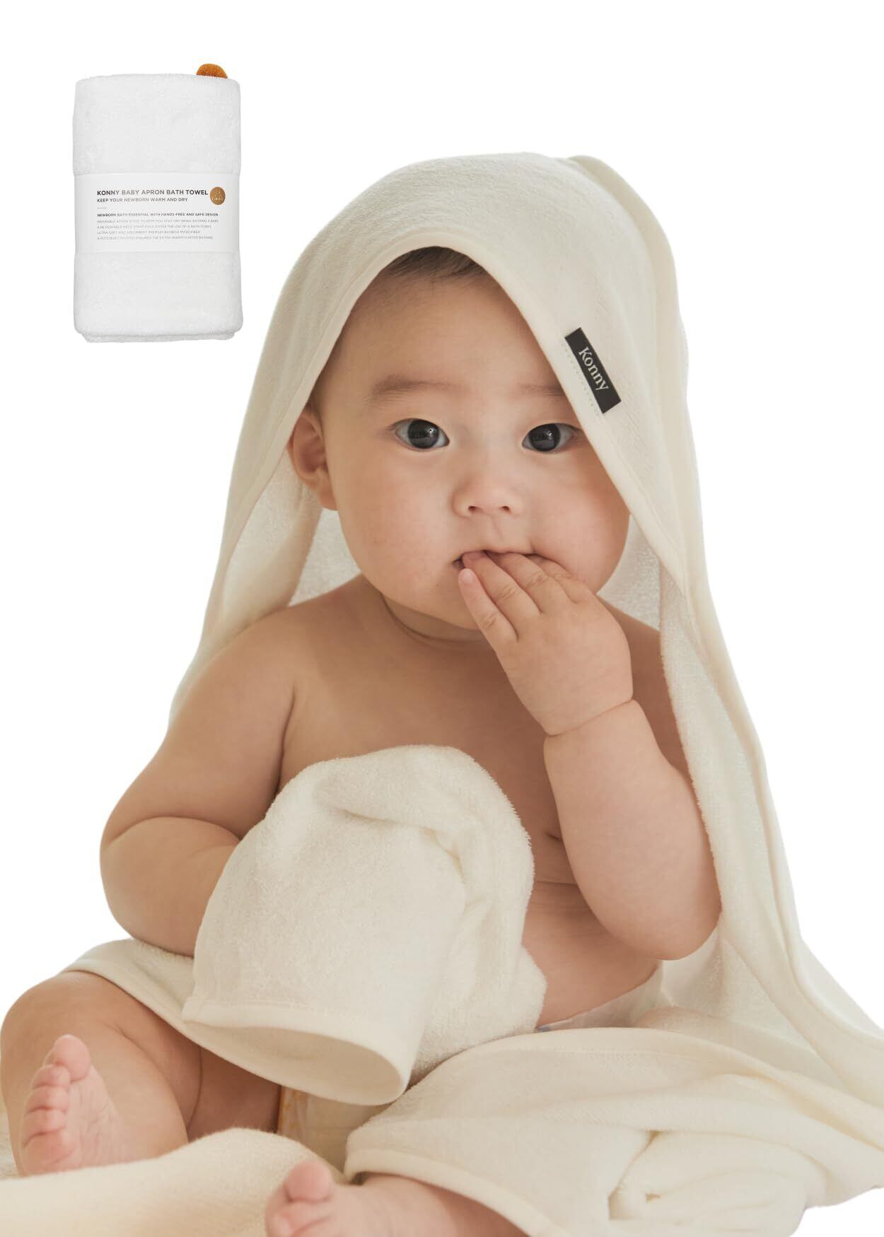 【特価商品】[Konny] コニー EasyBath ニューボーンタオル バスエプロン 新生児 沐浴 赤ちゃん ワンオペお風呂の味方 吸収力 バンブー素材 柔らかい サラサラ感 バスタオル 男の子 女の子 出産祝いギフト(Cream)