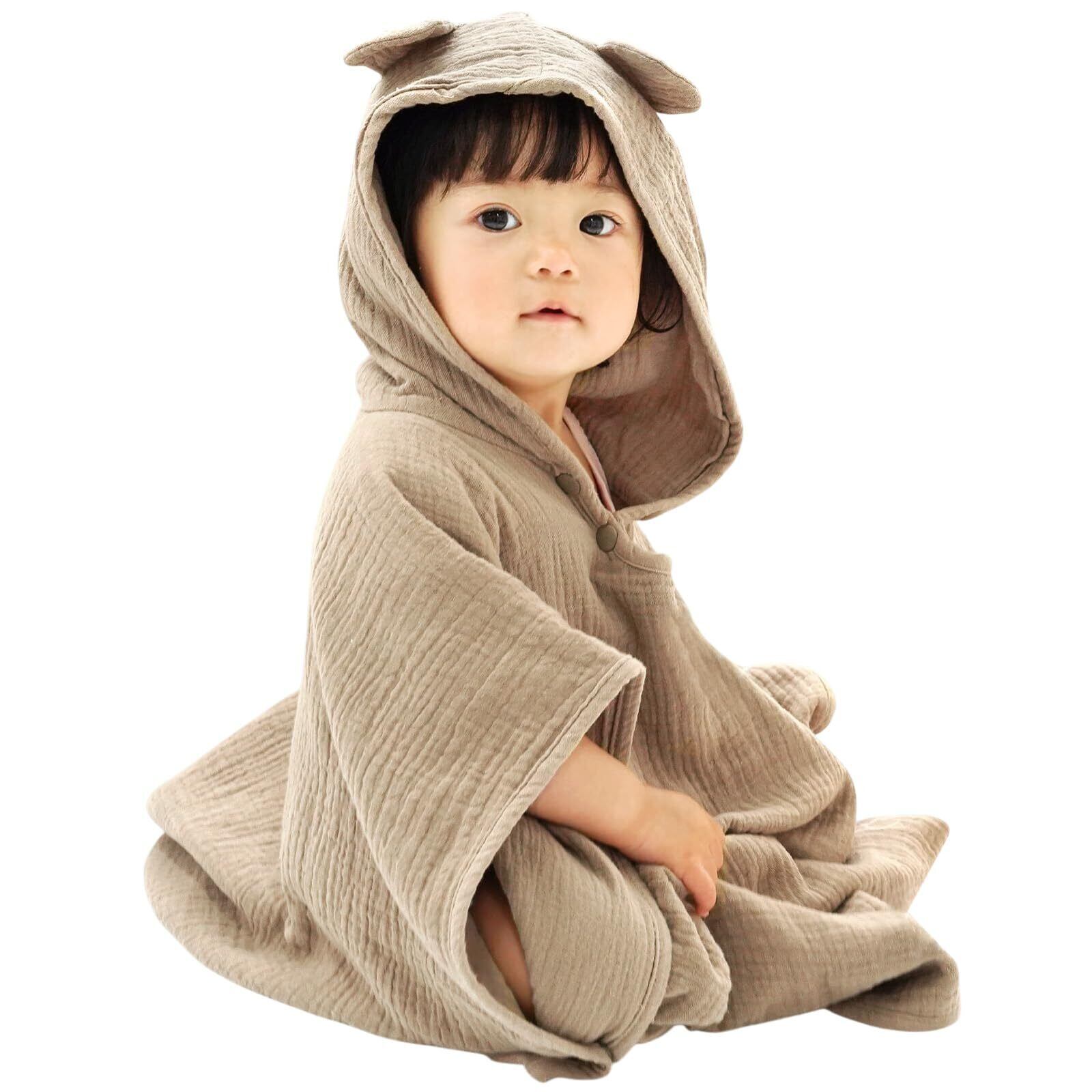 【特価商品】[atRise] 高吸水×速乾≪4重ガーゼ≫フード付きタオル 赤ちゃん ベビーバスローブ 《0歳からOK》綿100% 4重ガーゼ S/Mサイズ 出産祝い/プレゼントにも タオルポンチョ ワンオペ お風呂 プール