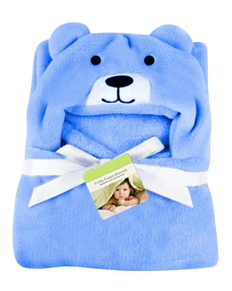 [CREDIBLE] ベビー 幼児 用 アニマル バスローブ ポンチョ と ベビービブ 6枚 セット オリジナルグッズ付き (くまさん・ブルー) BM0215