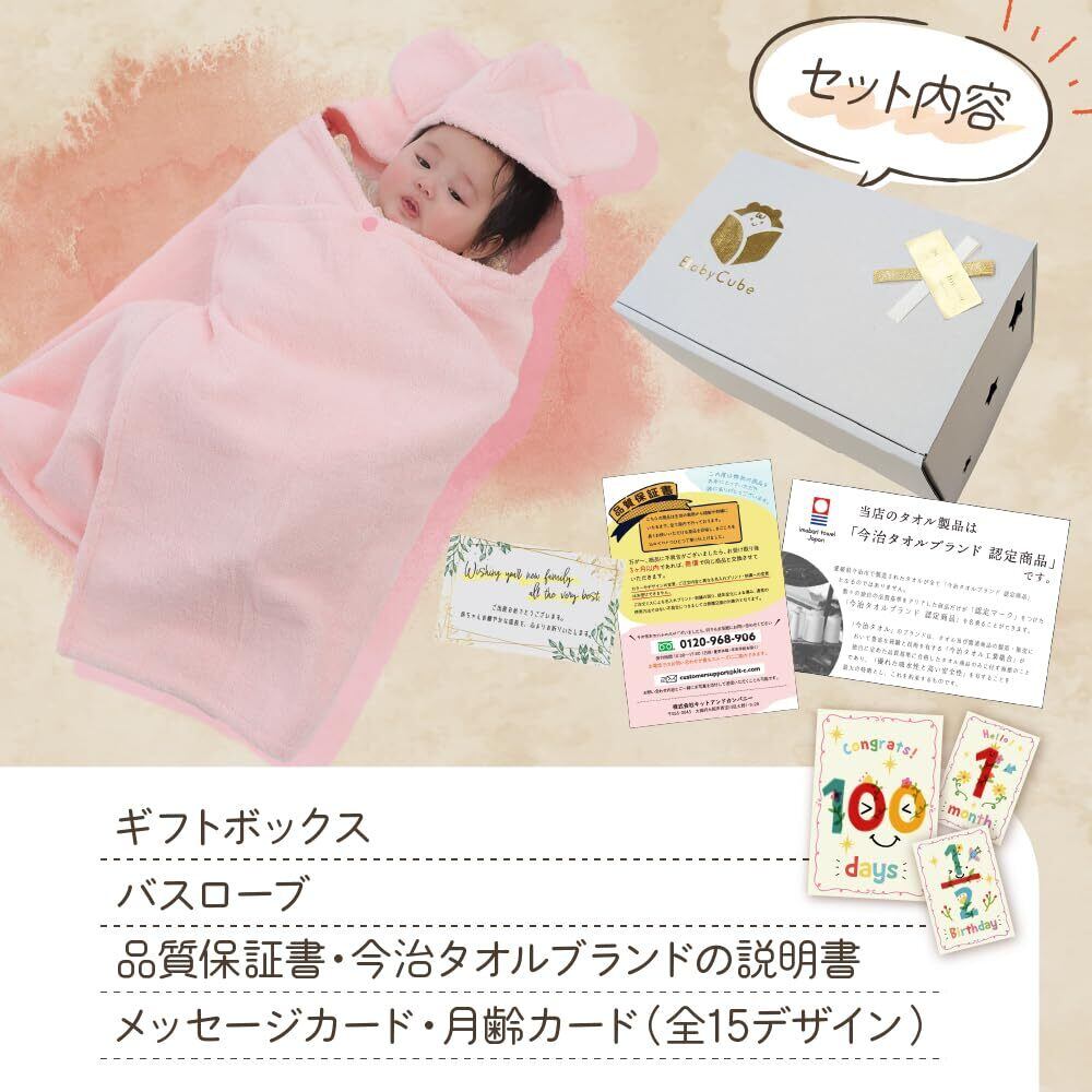 今治タオル 出産祝い ベビーバスローブ BabyCube バスポンチョ 赤ちゃん ベビーバスタオル 女の子 男の子 タオルギフト 人気 日本製 新生児 1歳 (ベビーピンク)