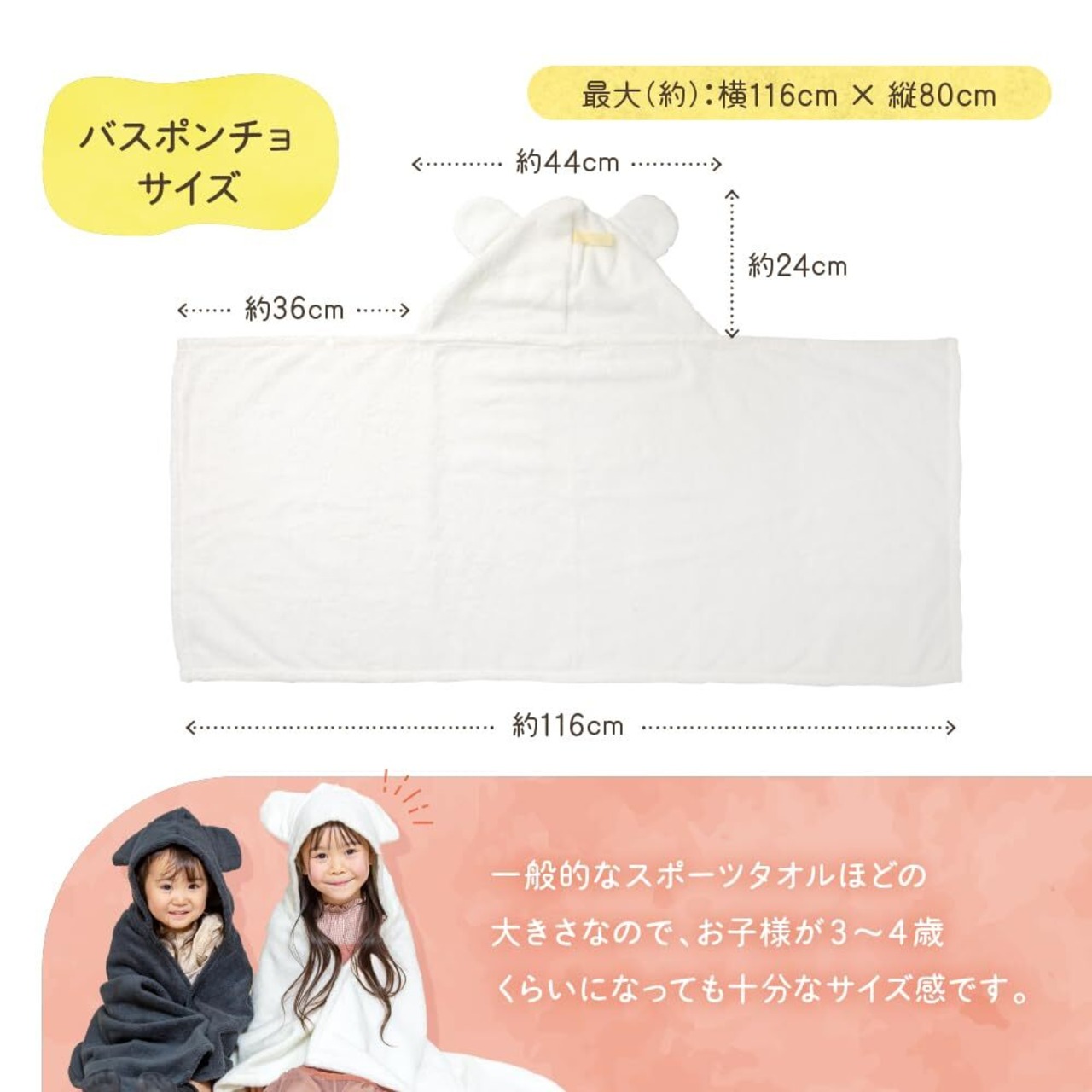 体を包むのに十分な大きさで、お風呂上りやプール遊びの際に大活躍します