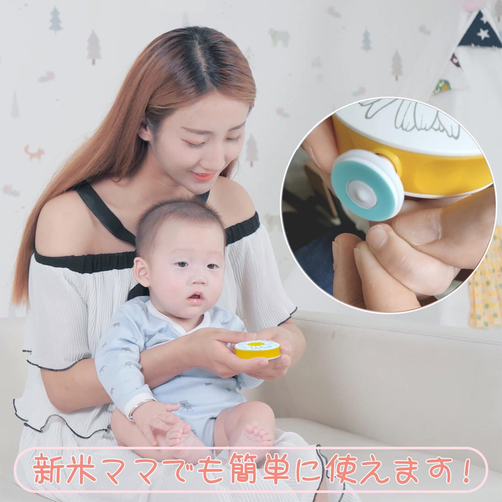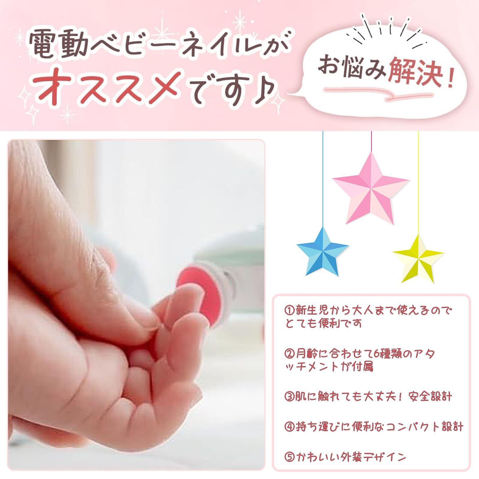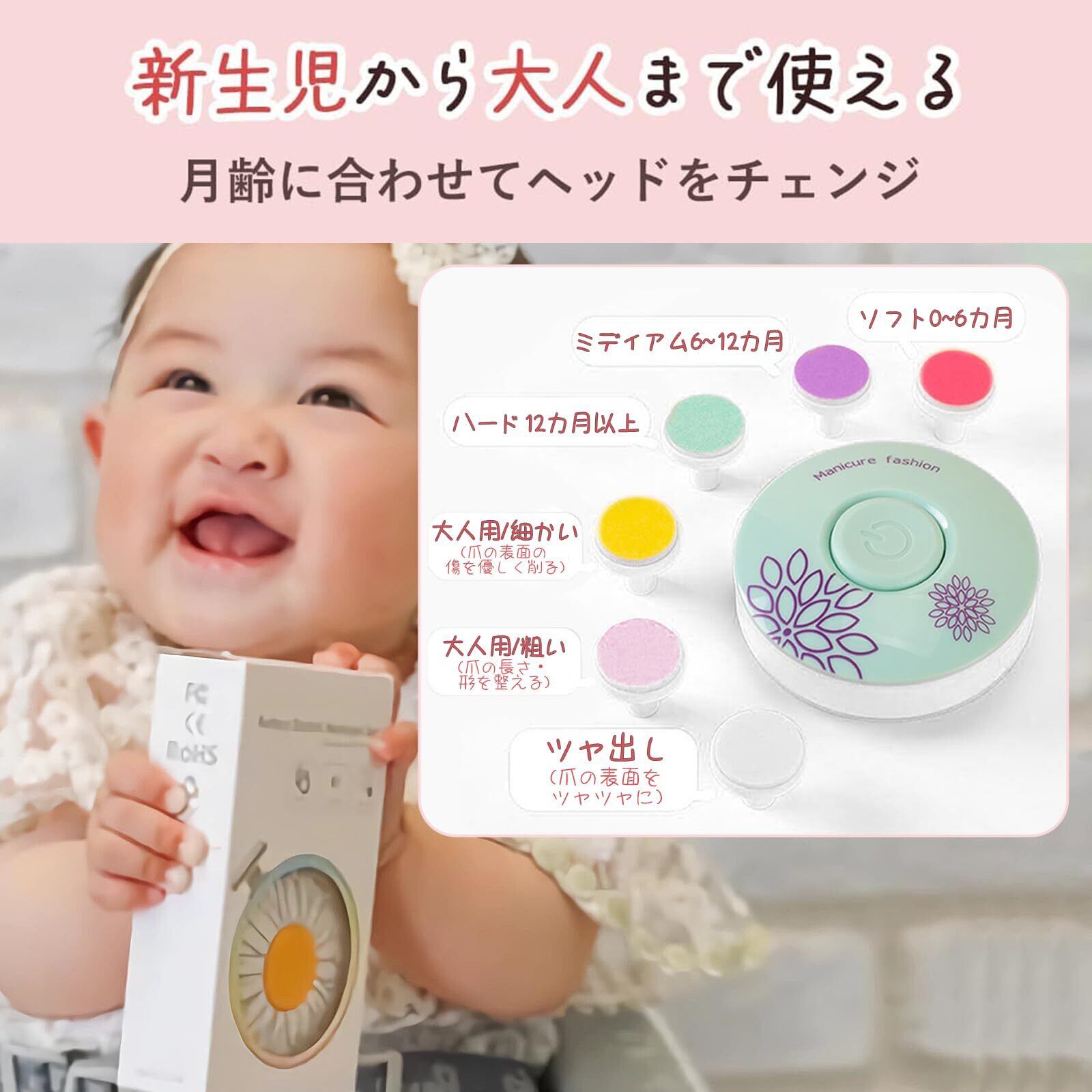 雲見 赤ちゃん つめきり 電動爪やすり ベビー Type-C 6タイプのアタッチメント付き 赤ちゃん用3種 大人用3種 ベビー 爪切り 2段階の速度調整 幼児・子供用低速 大人用高速 新生児 大人 爪切り 赤ちゃん