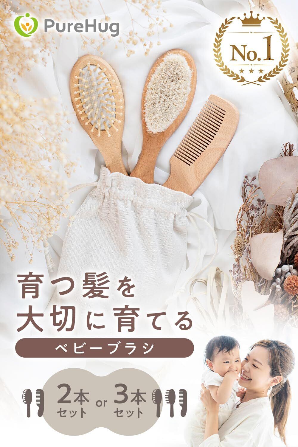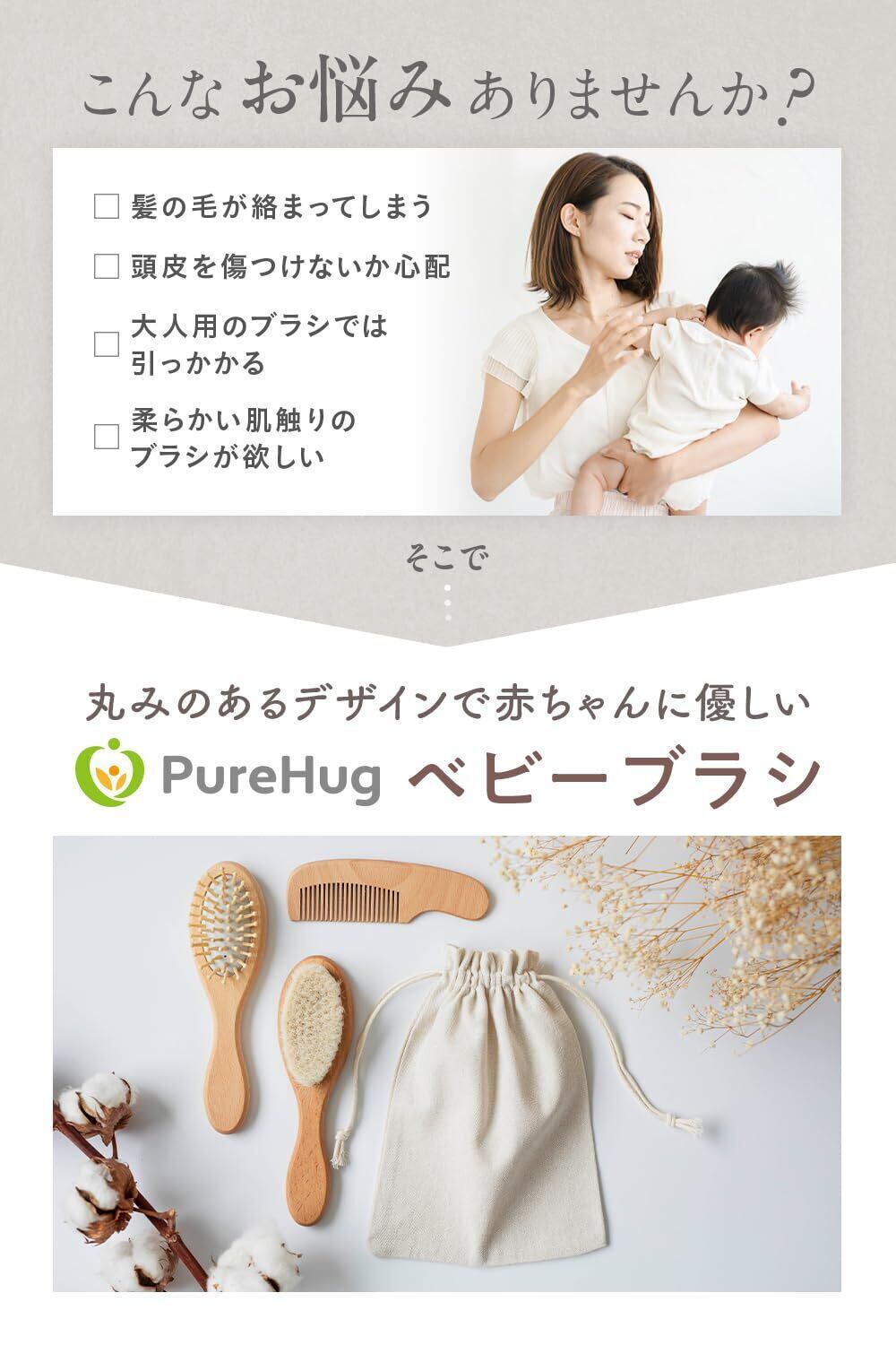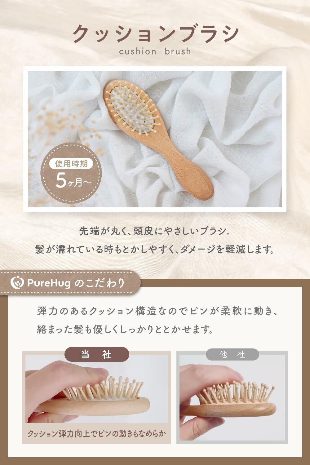 【髪も、頭皮も、心地よく】PureHugから助産師監修のベビーブラシが新登場!安全性に配慮した丸みのあるデザインなので赤ちゃんへの刺激を抑えながら、髪の毛を優しくとかすことで絡まりを防ぎます。
