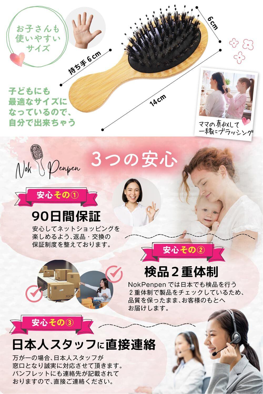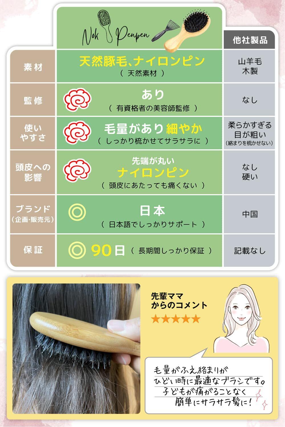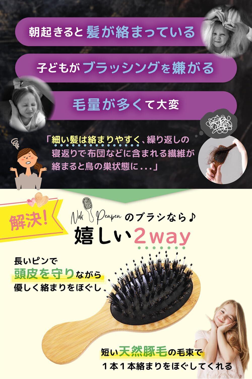 【毛量多い子専用】 ベビーブラシ 幼児 ヘアブラシ 『やさしく撫でるだけで絡まりほどける』 クリーナー付き 天然豚毛 くし 子供 保育園 【雑誌掲載】