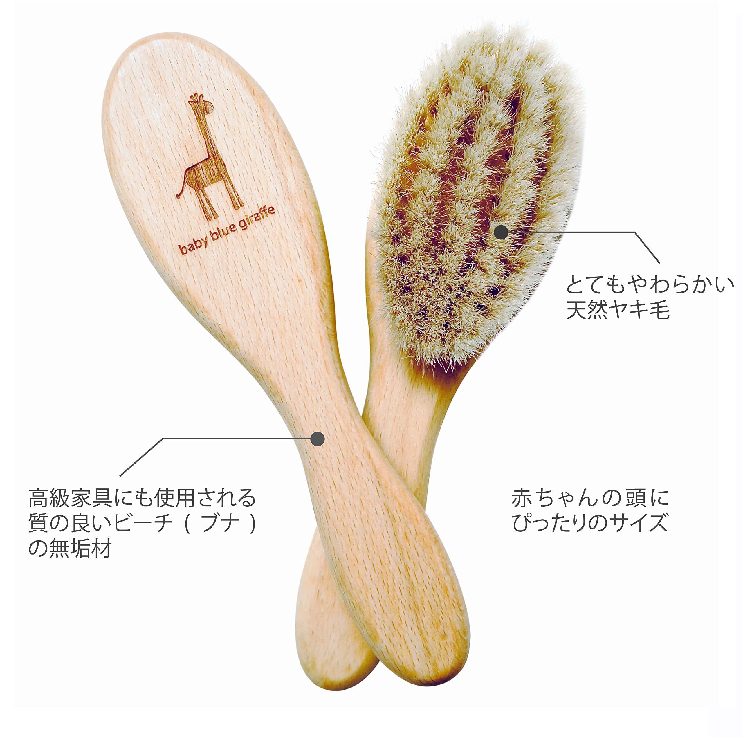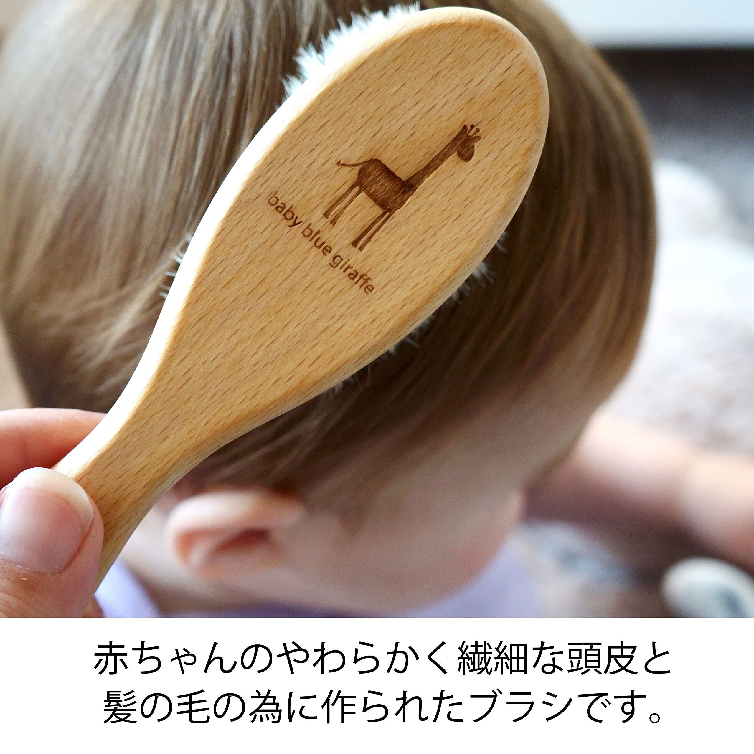 本製品は赤ちゃんのやわらかく繊細な、髪の毛と頭皮の為につくられたブラシです。ヘアブラシをはじめ、メーキャップブラシ、絵画用の絵筆などブラシ生産で有名なドイツの地域で、職人の手によって一つ一つ丁寧に製造されています。赤ちゃんの小さな頭にピッタリのサイズ感です。本体は高級家具等にも使用される良質なビーチ(ブナ)の無垢材を使用。ブラシ部分は赤ちゃんの柔らかな髪の毛や繊細な頭皮にやさしい、自然の中で育った柔らかなヤギの毛を使用。ヤギ毛に含まれる油分がブラッシングの滑りを助け、髪の毛にツヤを与えます。ブラッシングする事で地肌をほどよく刺激。血行を促進し、マッサージ効果も得られます。オシャレなパッケージで贈り物にも最適。同ブランドのつめやすりとセットにしても。定期的に、髪の毛やフケをコーム等で取り除き、丁寧にお手入れすれば長く使える高品質なブラシです。本体のビーチ材はサスティナブル認証を受けた森で伐採された木材を使用しています。