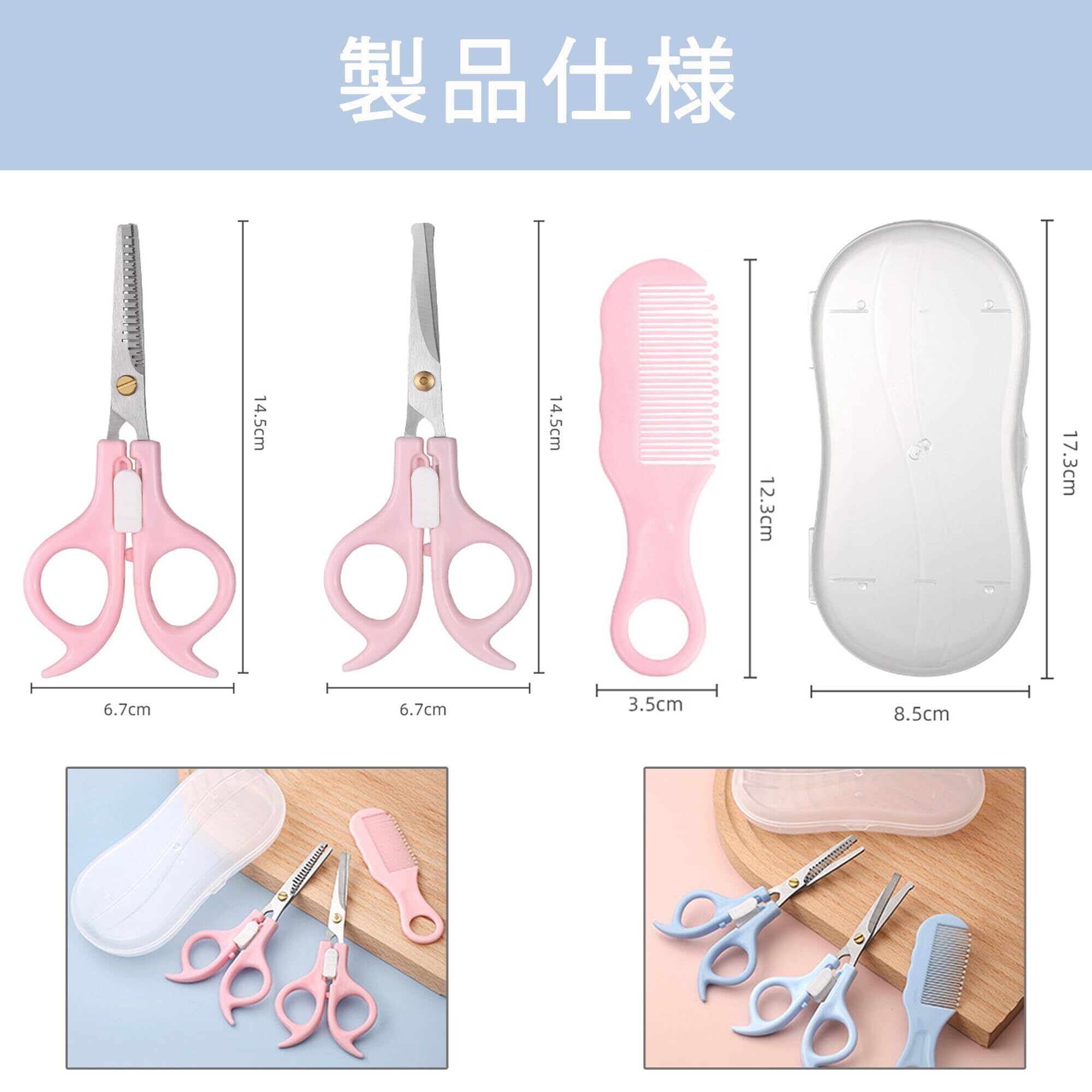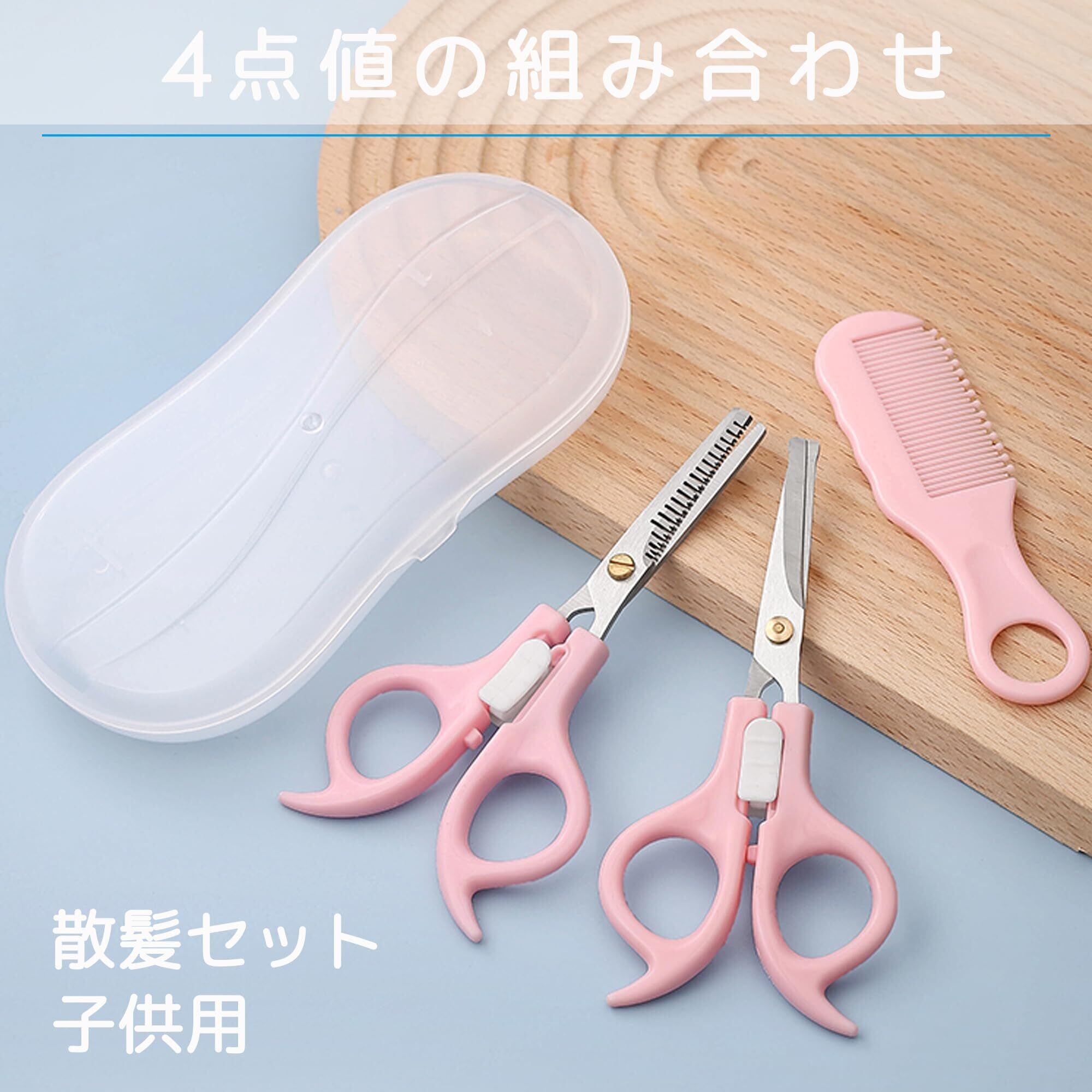 【在庫処分】DELUXEFOX 散髪 はさみ 子供 すきばさみ 3本セット セルフカット 安全なロック付き ハサミ フラットシザース ドットコーム 髪切りはさみ クッションくし 家庭用 赤ちゃん ベビー用 収納ボックス付属 (ピンク)