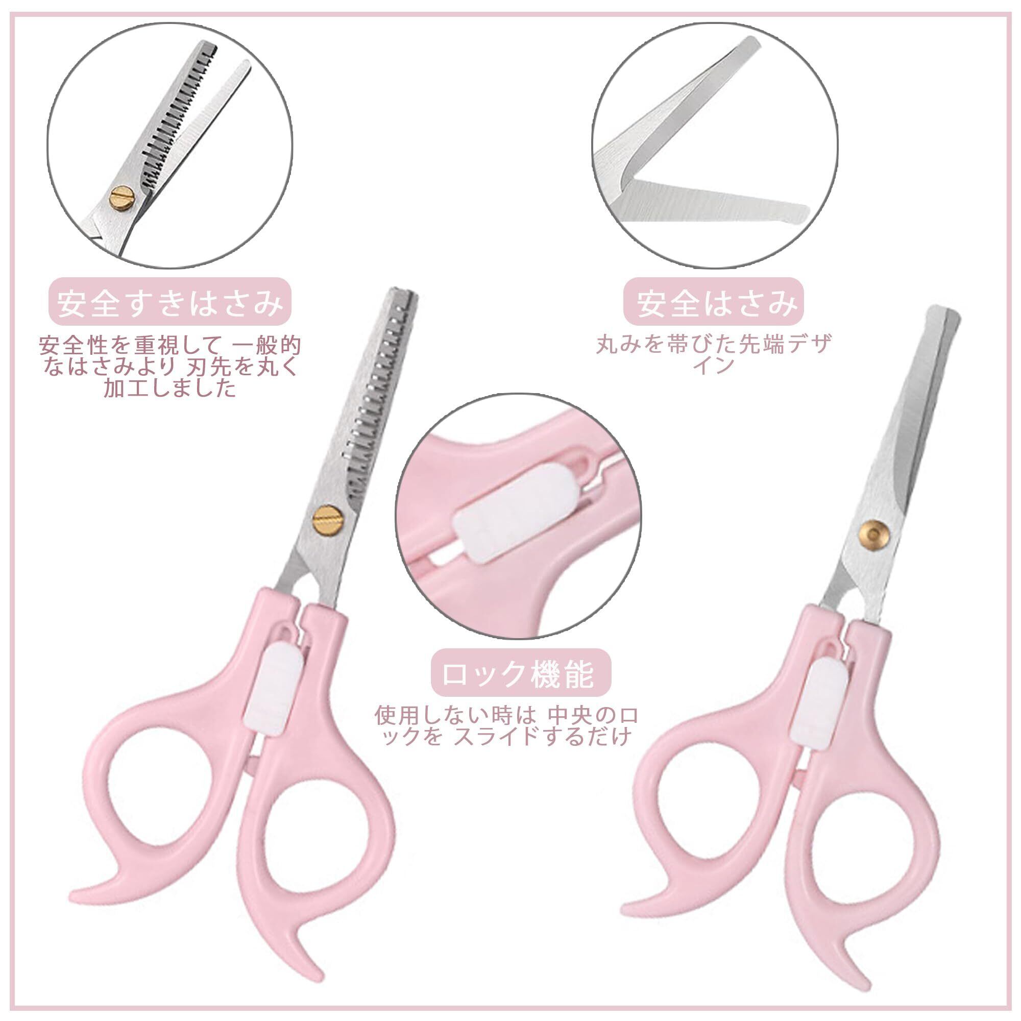 DELUXEFOX 散髪 はさみ 子供 すきばさみ 3本セット セルフカット 安全なロック付き ハサミ フラットシザース ドットコーム 髪切りはさみ クッションくし 家庭用 赤ちゃん ベビー用 収納ボックス付属 (ピンク)