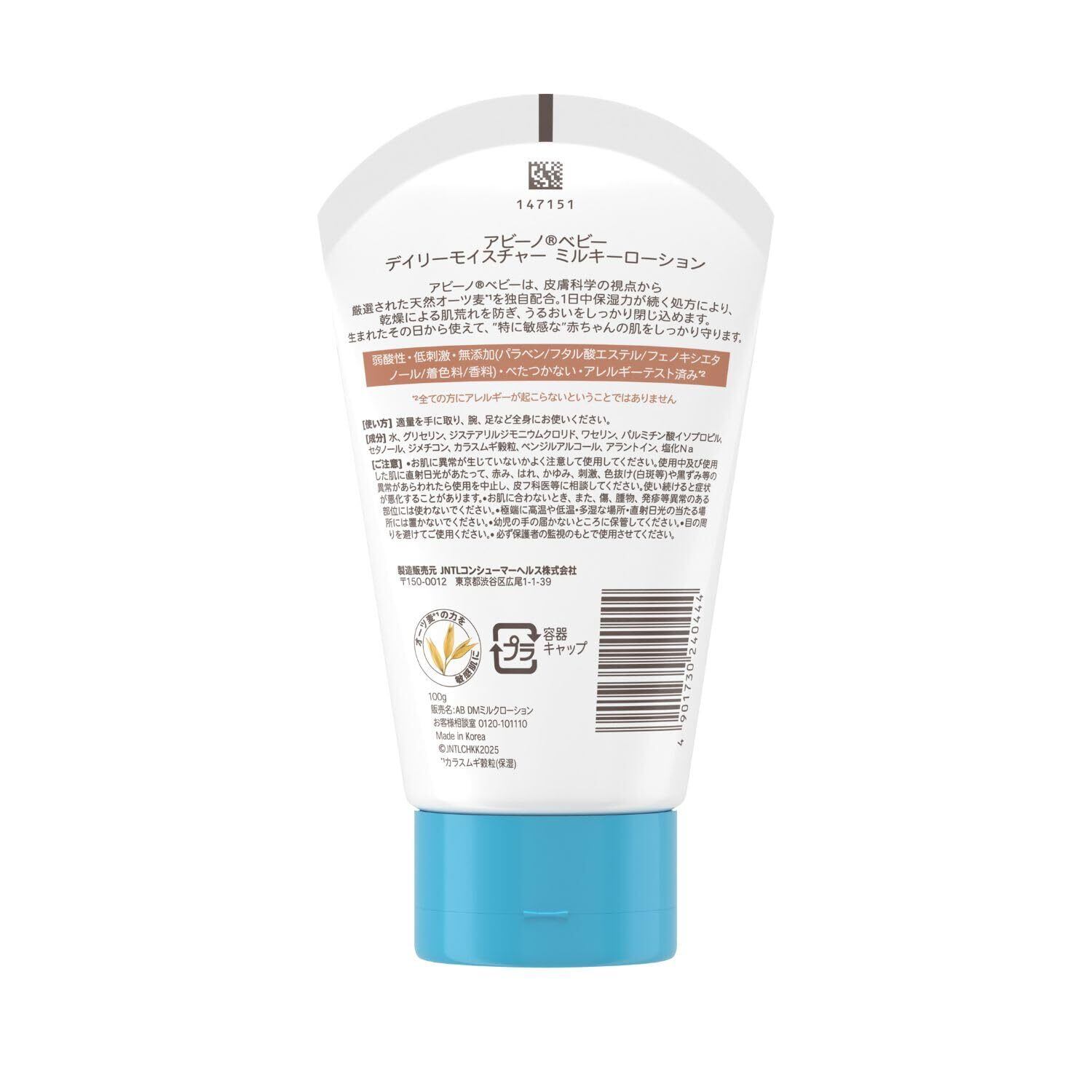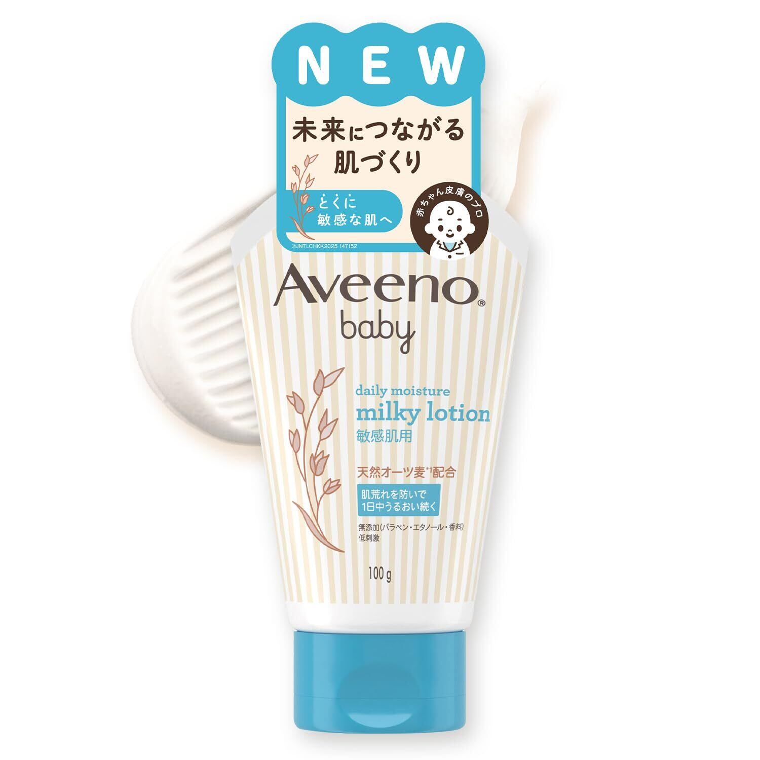 皮膚科学の視点から厳選された天然オーツ麦*1を独自配合。1日中保湿力が続く処方により、乾燥による肌荒れを防ぎ、うるおいをしっかり閉じ込めます。すーとべたつかない塗り心地。生まれたその日から使えて、”特に敏感な”赤ちゃんの肌をしっかり守ります。 *1 カラスムギ穀粒(保湿)