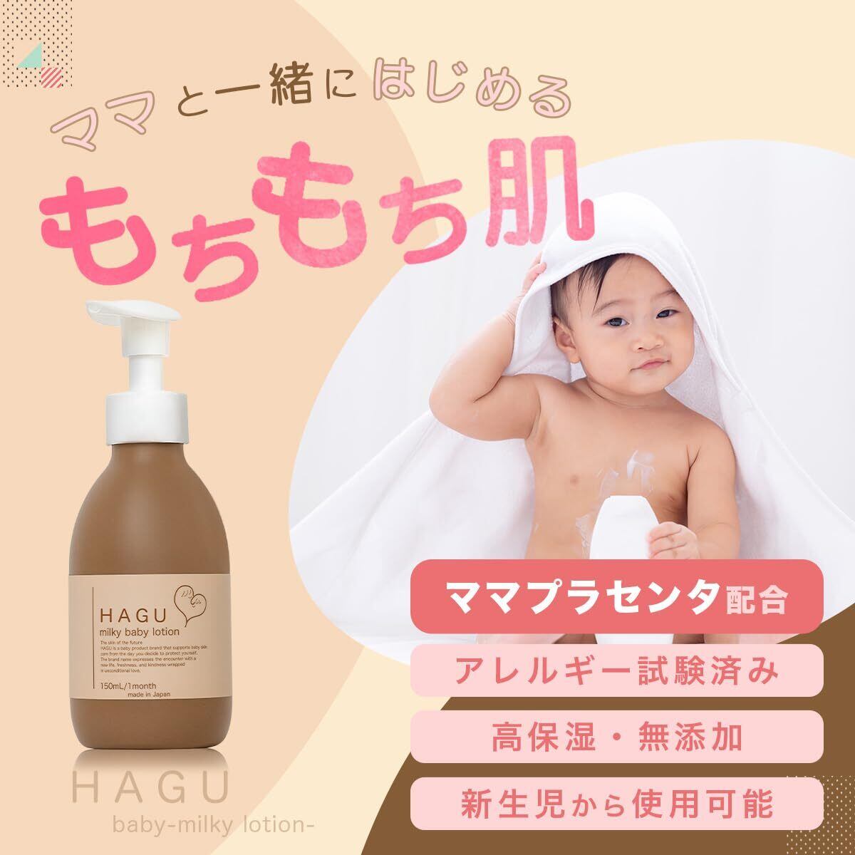 HAGU ハグベビー ベビーローション 低刺激 新生児 クリーム 赤ちゃん 保湿 無添加 無香料 150mL