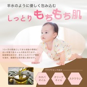 【なめらかにお顔〜全身へ】生まれたその日から使えるミルキー ローション は、伸びよくなじみ、赤ちゃんの肌を包み込みます。 無添加 ・ 無香料 で安心安全にお使いいただけます。