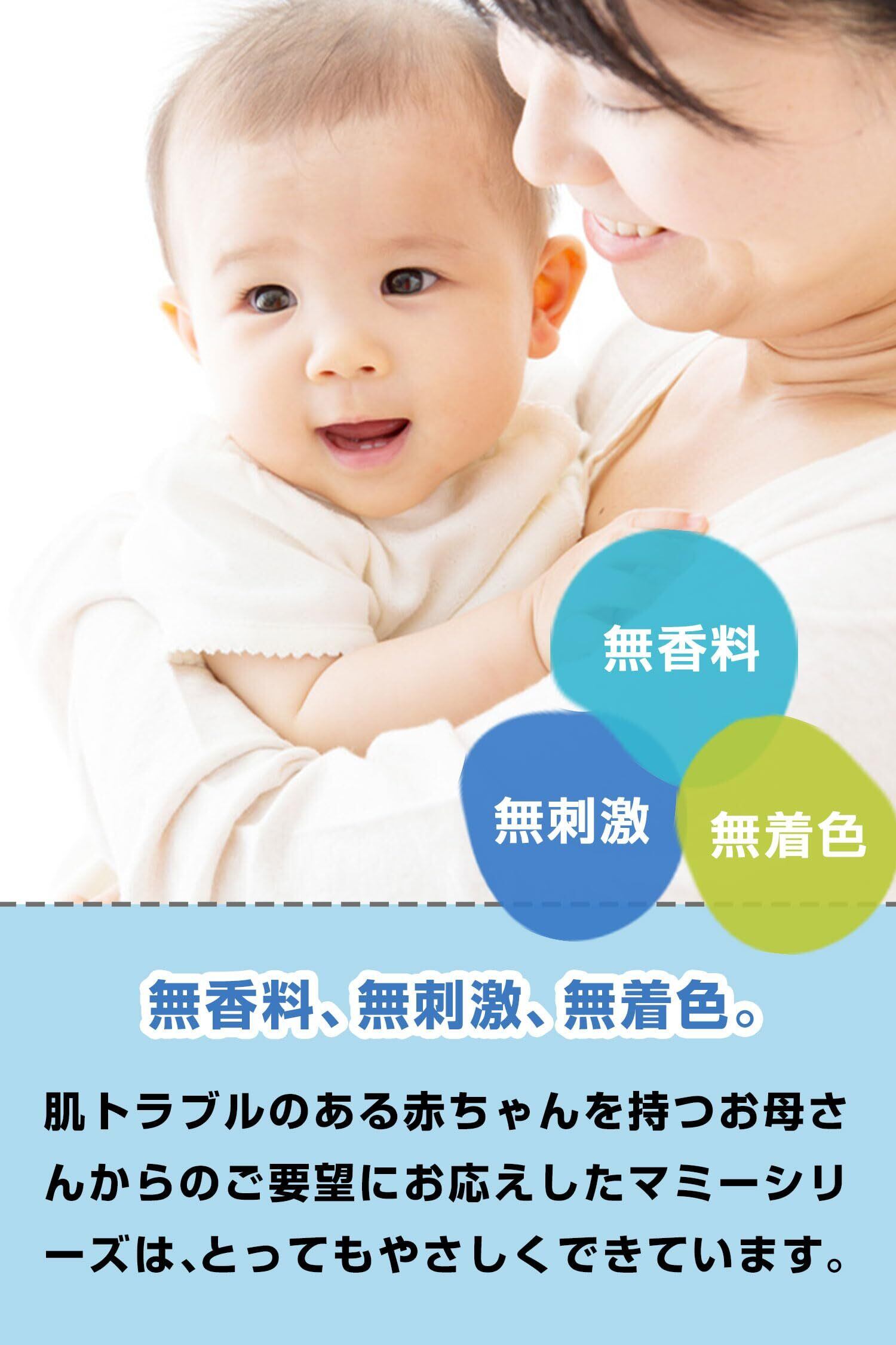 マミーウォーターは化学物質を全く使用していないので、赤ちゃんの目や口に入っても害がなく安全です。お肌にトラブルがある場合でも安心して使えます。天然原料100% 化学物質完全無添加。