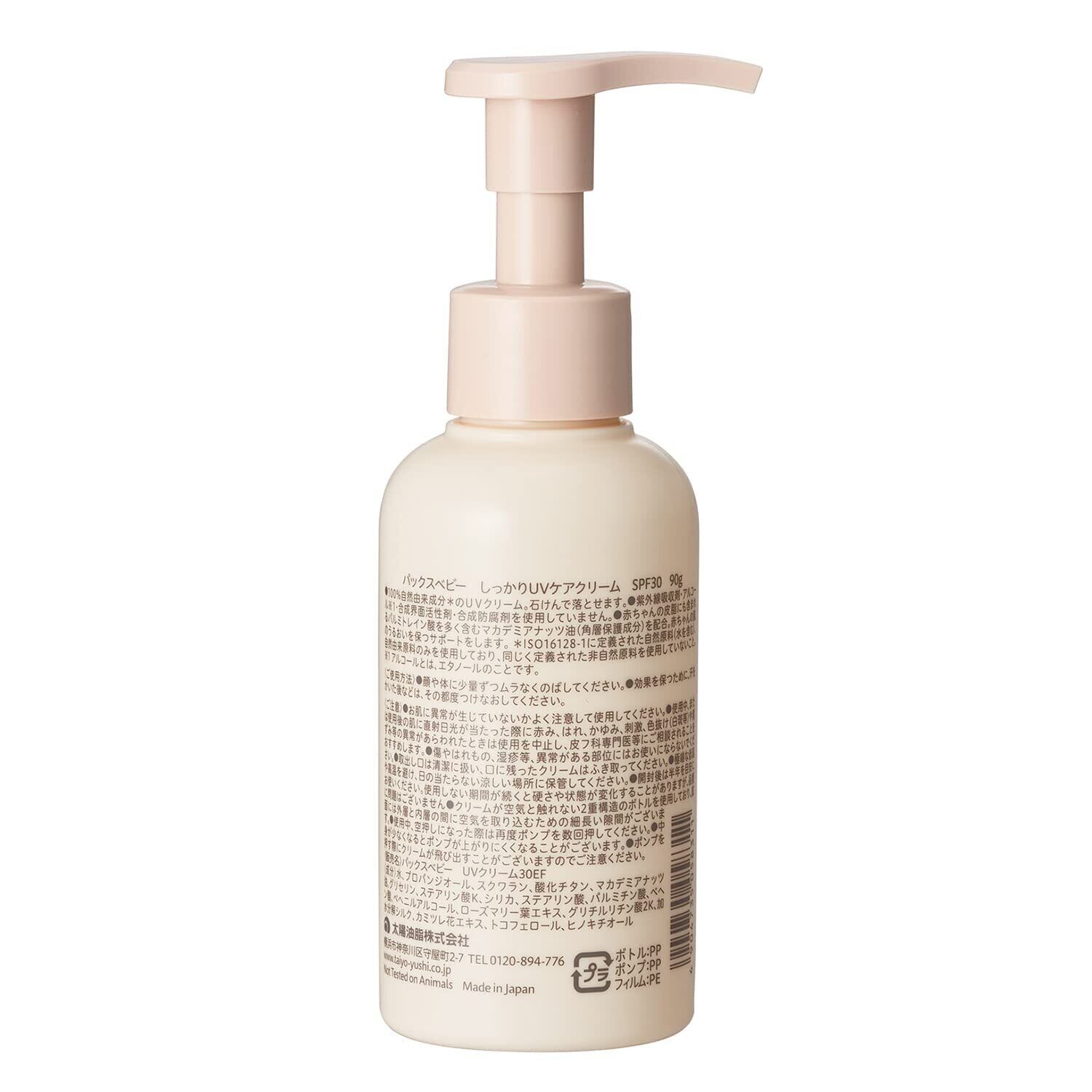 パックスベビー しっかりUVケアクリーム SPF30 90g 日焼け止め ポンプ UV 無添加 無香料 天然由来100% 太陽油脂