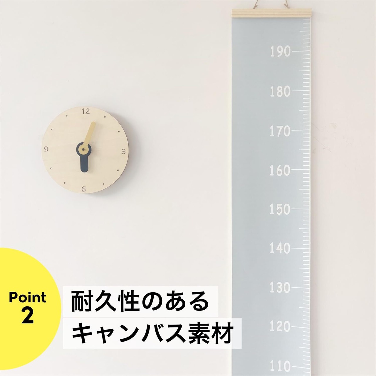【シンプルな北欧風デザイン】シンプルで洗練された北欧風デザインが特徴。お子様の成長記録に最適で、ペンで直接身長を書き込めます。様々なお部屋のインテリアにも自然に溶け込みます。