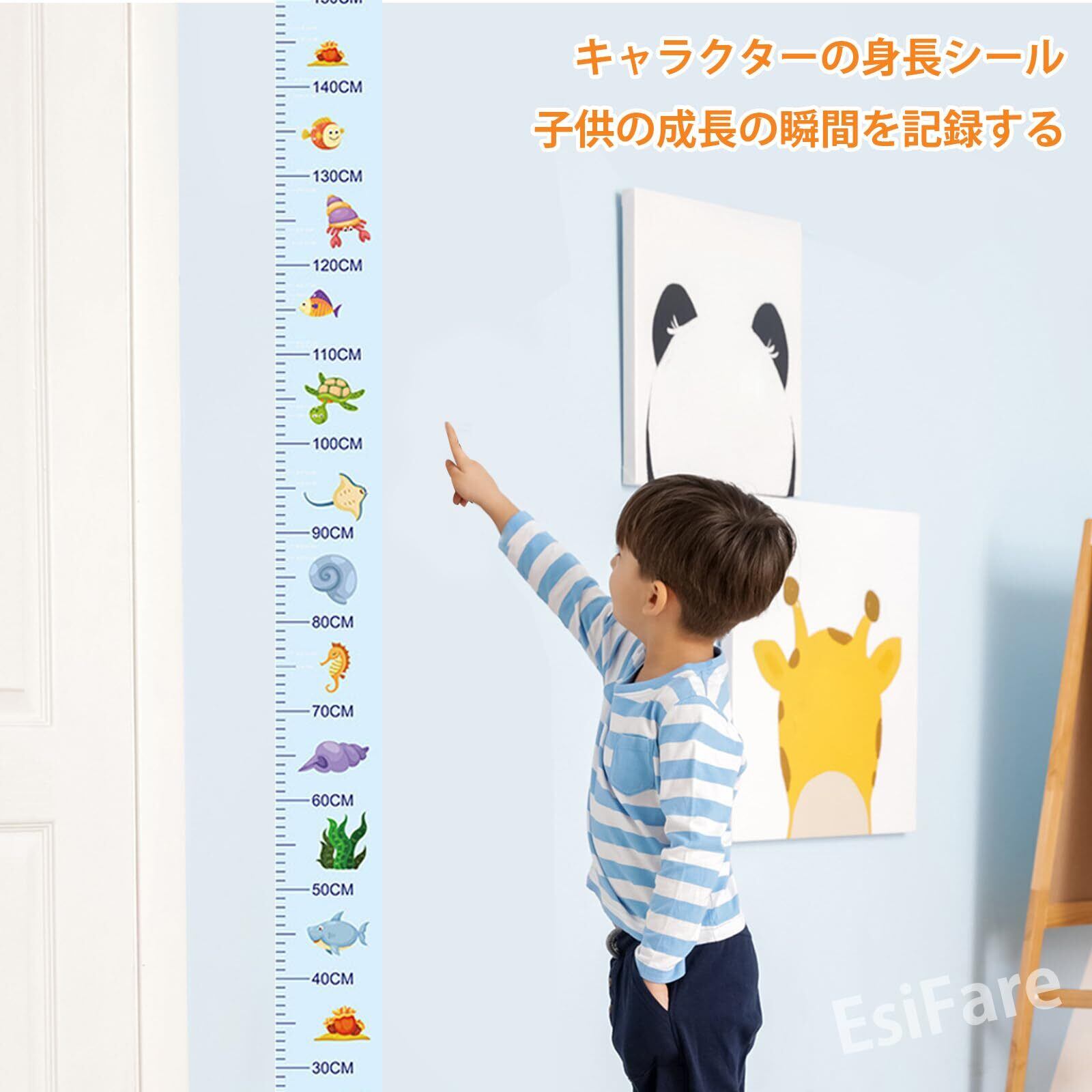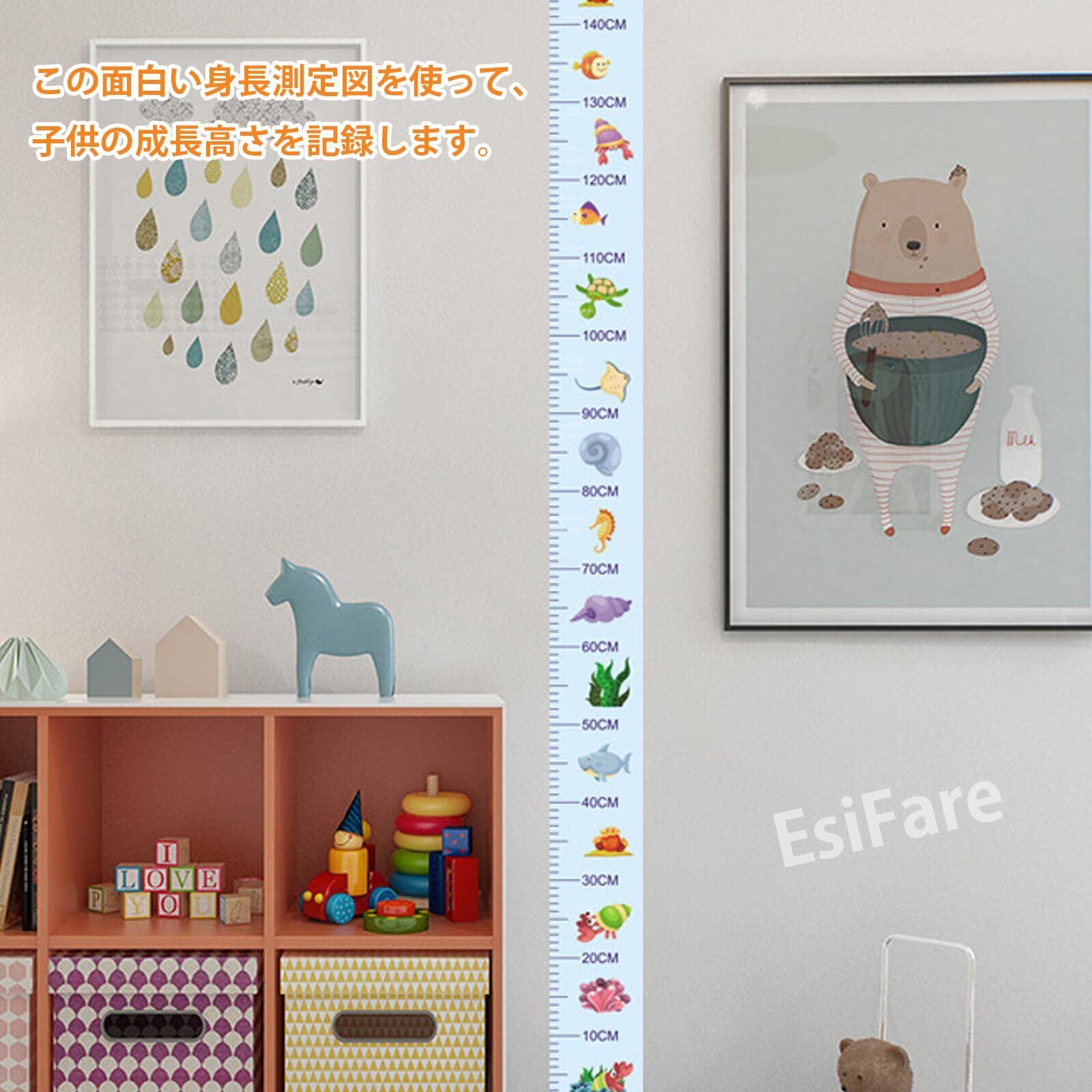 【人気商品】EsiFare 身長計 壁貼り 子供身長計 壁掛け 測定範囲0-200cm 子供の成長記録 一体型 ステッカー 身長計 ウォールステッカー 精度高い こども 身長測定 ステッカー 取り付け簡単 目立たない こども部屋 リビング インテリア 目盛り 出産祝い プレゼント 貼ってはがせる はっきりした目盛り 可愛い (海洋)