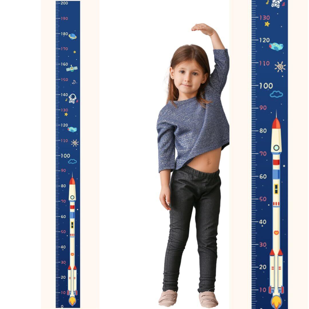【BEAU LLASSANA】子供身長計 身長測定 壁貼り身長計 測定範囲0-200m キャンバス子供の成長記録 部屋の装飾 身長ステッカー インテリア 測りやすい インテリア おしゃれ 玄関 壁デコ ホームデコレーション 200×12cm (ロケット, 200)