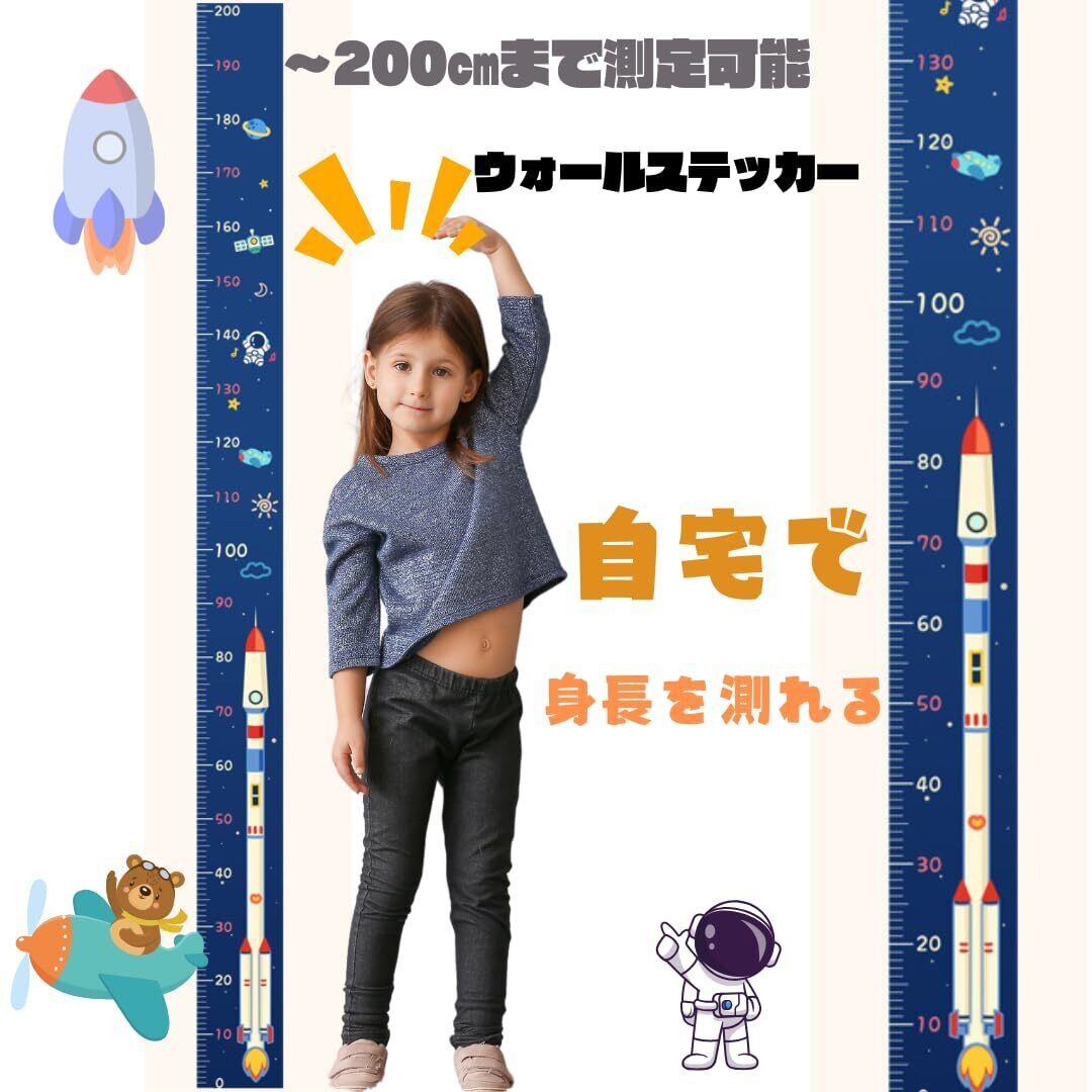 【新春セール】【BEAU LLASSANA】子供身長計 身長測定 壁貼り身長計 測定範囲0-200m キャンバス子供の成長記録 部屋の装飾 身長ステッカー インテリア 測りやすい インテリア おしゃれ 玄関 壁デコ ホームデコレーション 200×12cm (ロケット, 200)
