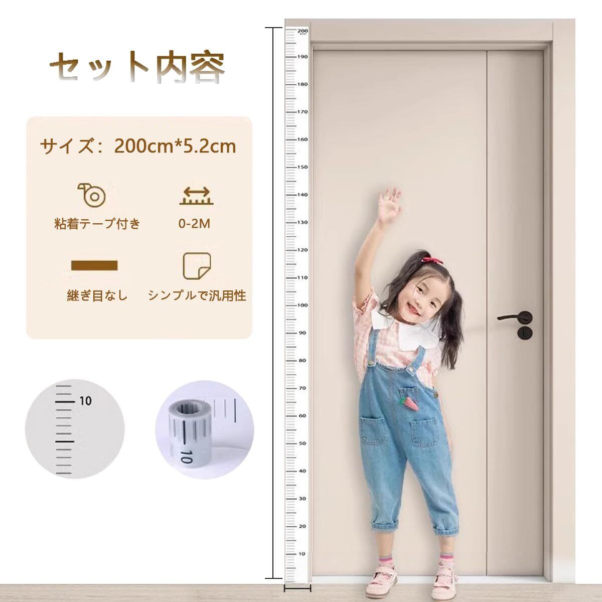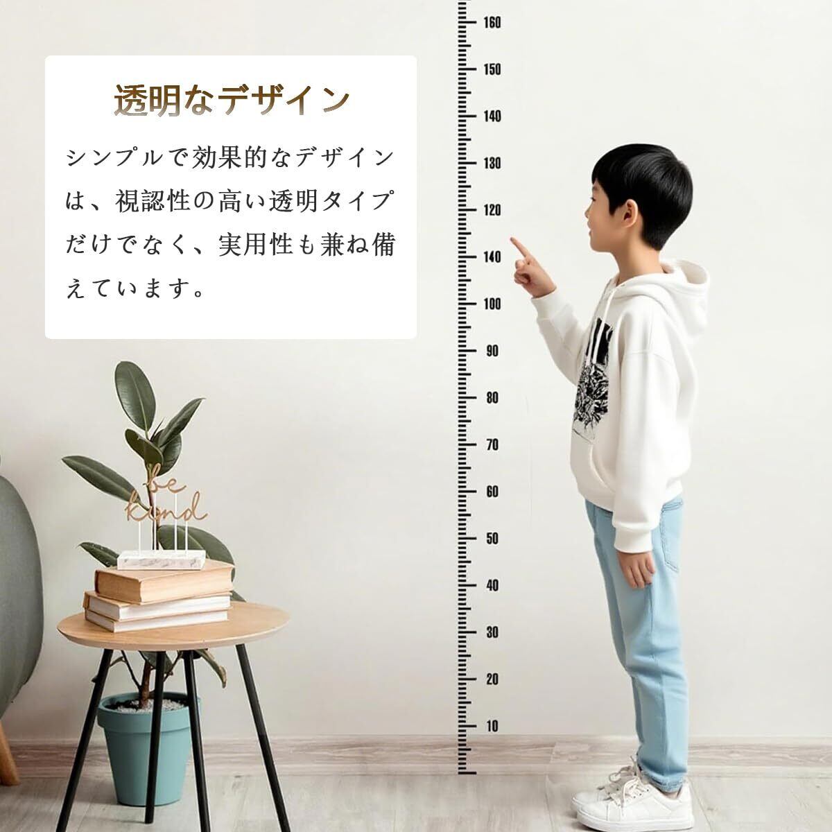 BTtime 身長計 ウォールステッカー 測定範囲0-200cm 透明 壁貼り 取り付け簡単 防水 汚れに強い 子供の成長記録 身長測定ステッカー 壁装飾 大人用