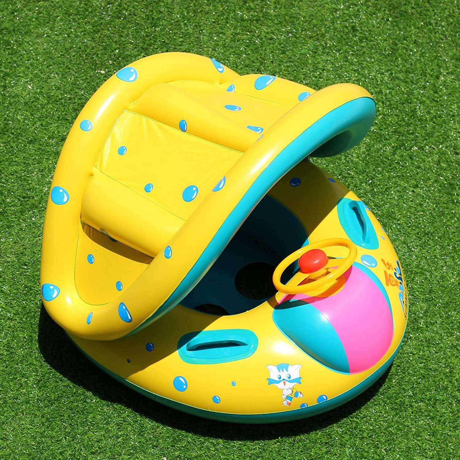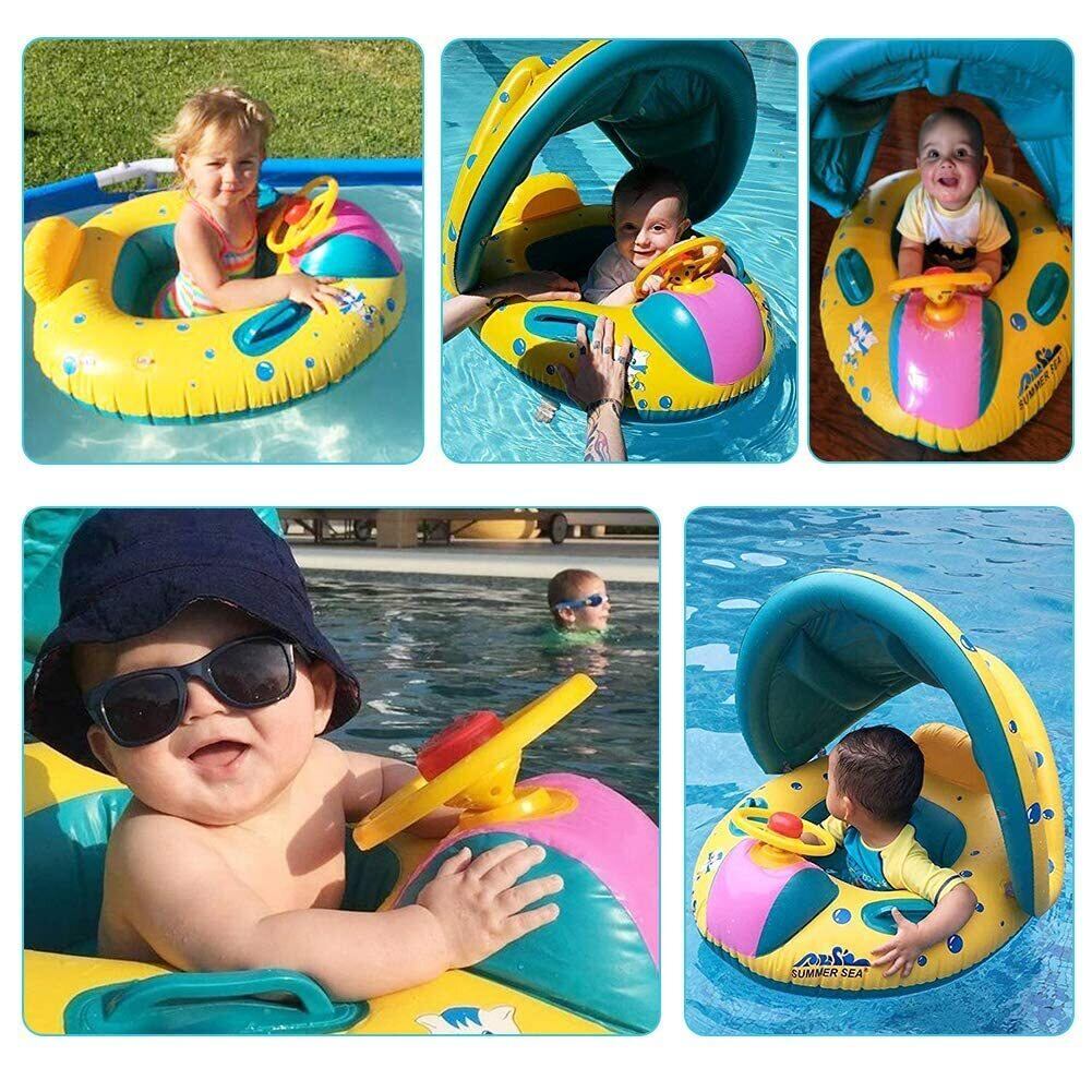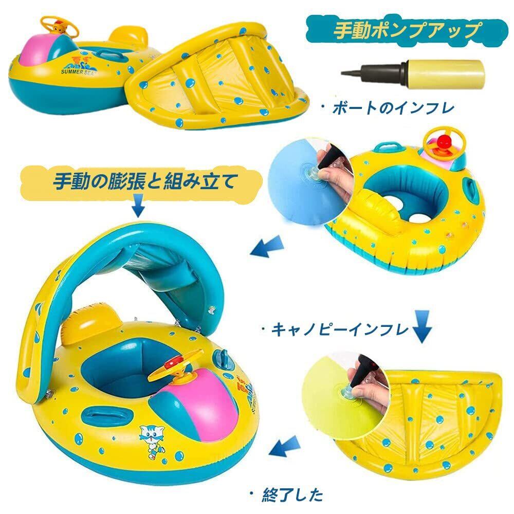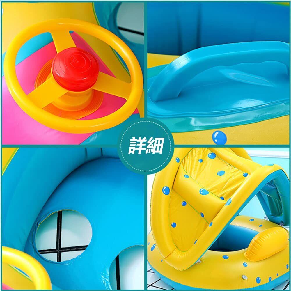 【在庫処分】ベビー浮き輪 子供 うきわ ベビーボート 赤ちゃん用 足入れ浮き輪 日焼け止め 取り外し可能なサンキャノピー 子供用 水泳練習 強い浮力 ハンドル付き フロート ウキワ スイミング 浮具 海 水遊び 水泳 プール お風呂 海水浴 ビーチ 夏グッズ 外遊び 旅行 夏休み アウトドア 暑さ対策 おもちゃ 生産祝い 誕生日 プレゼント ギフト