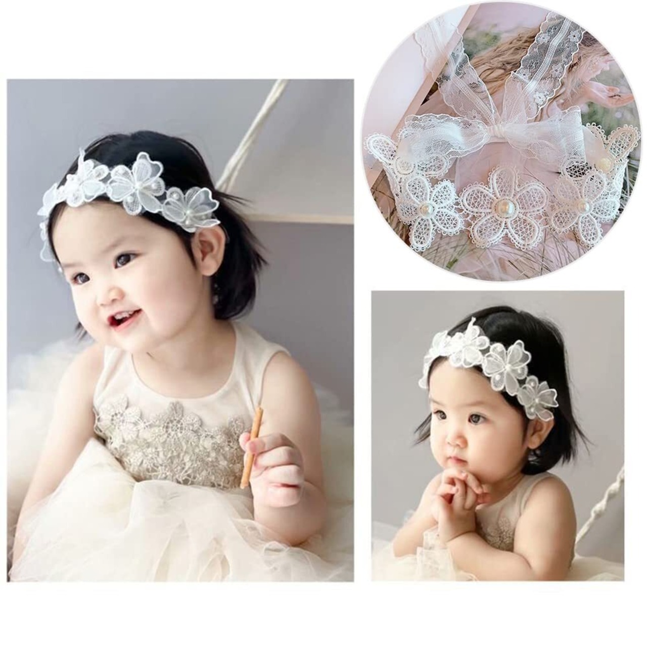【お幅広い使用】:新生児から使用できる可愛いベビー用ヘアバンドです。お宮参り、結婚式、セレモニー、普段のおしゃれ、寝相アート、ニューボーンアート など様々な場面でご使用いただけます。